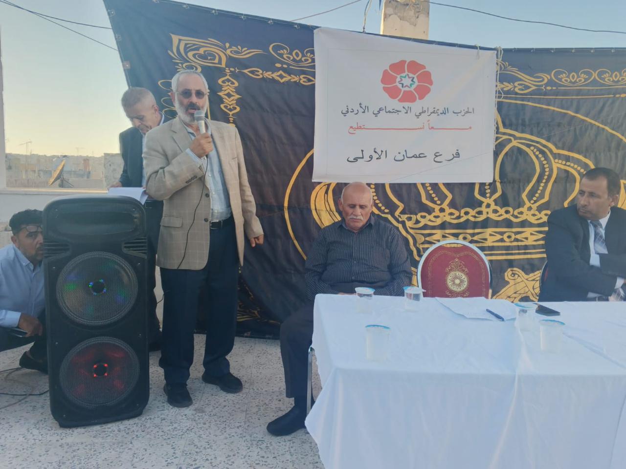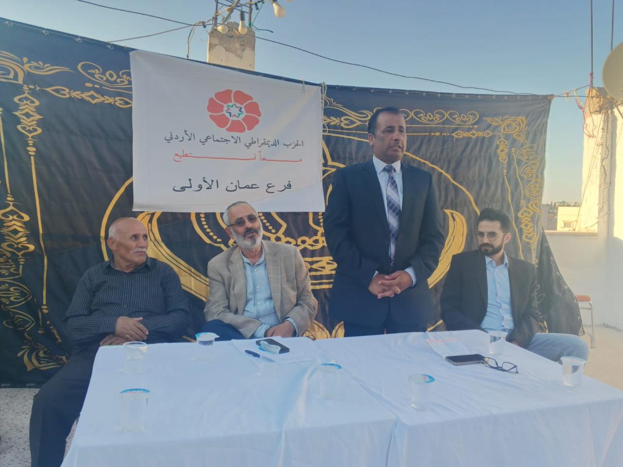 بدوره ألقى، القيادي في الحزب، العين الدكتور مصطفى الحمارنة كلمة لامست جوهر المشروع الديمقراطي الاجتماعي، وركّز فيها على أهمية ترسيخ مبادئ المواطنة، وسيادة القانون، وتكافؤ الفرص كمنطلقات لأي نهج إصلاحي حقيقي يستند إلى العدالة الاجتماعية.