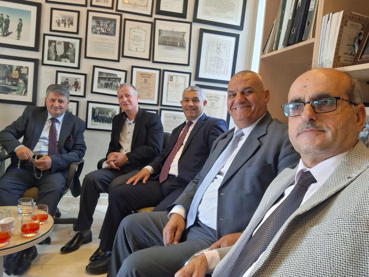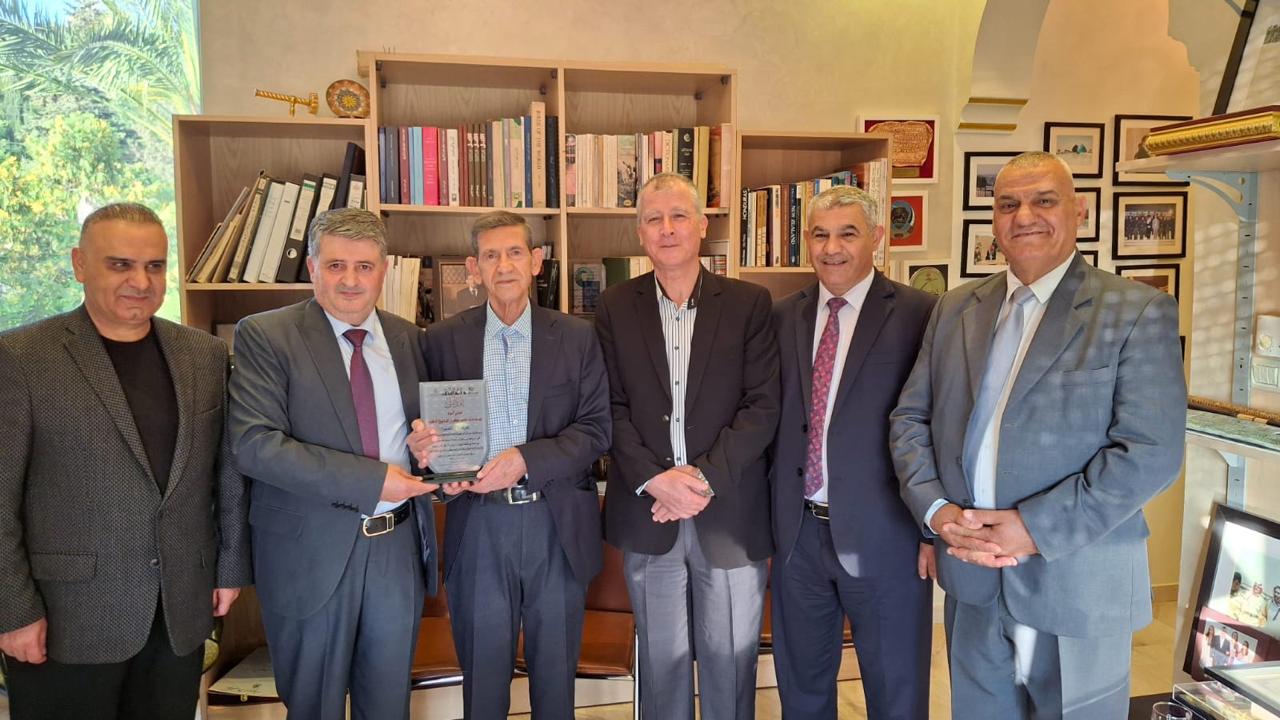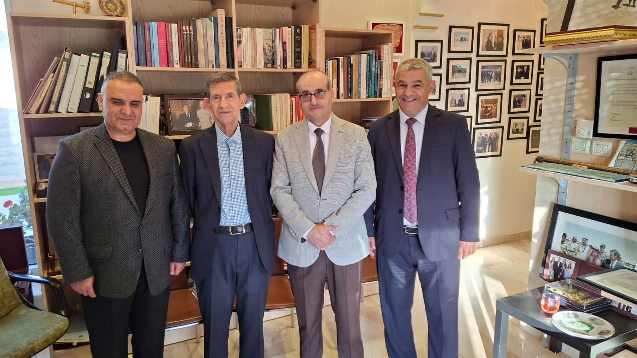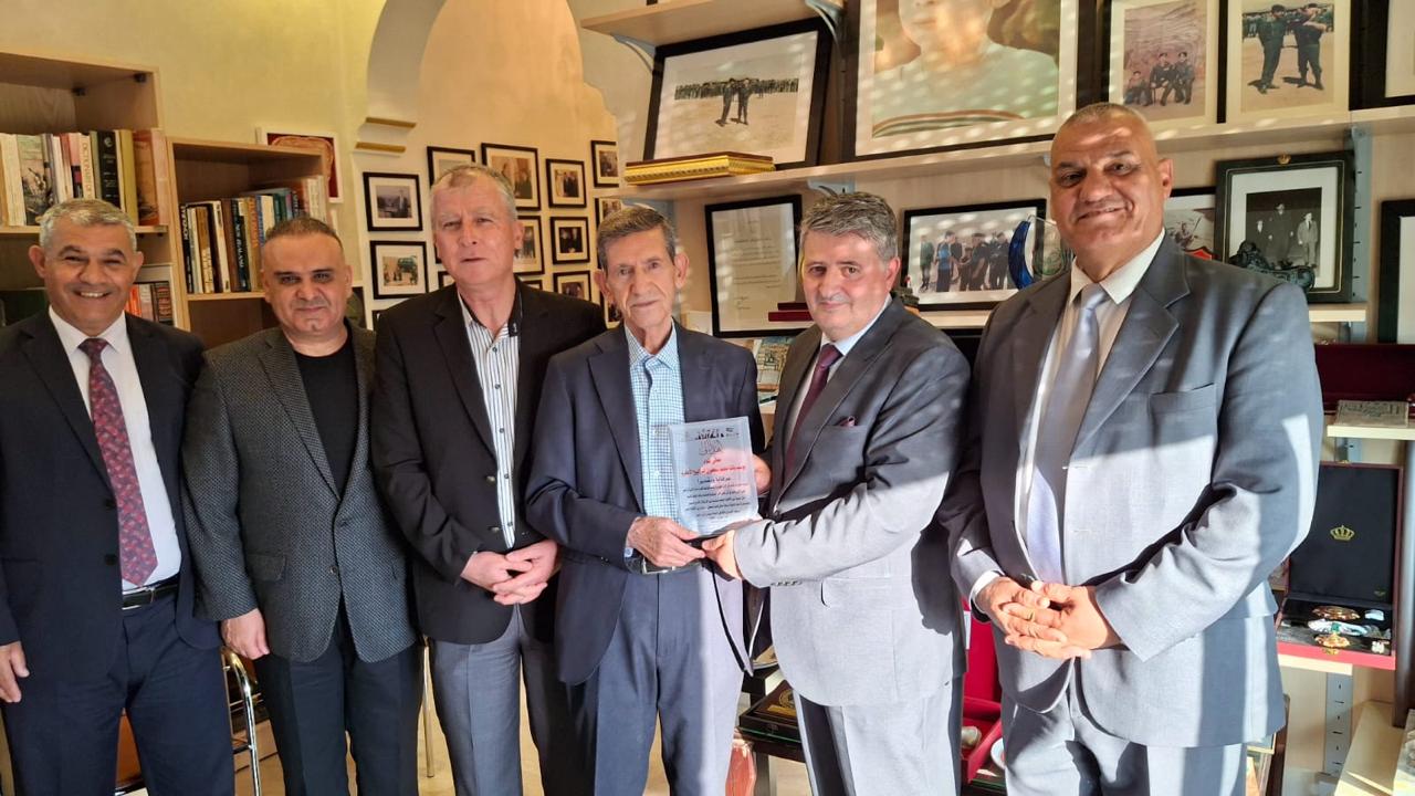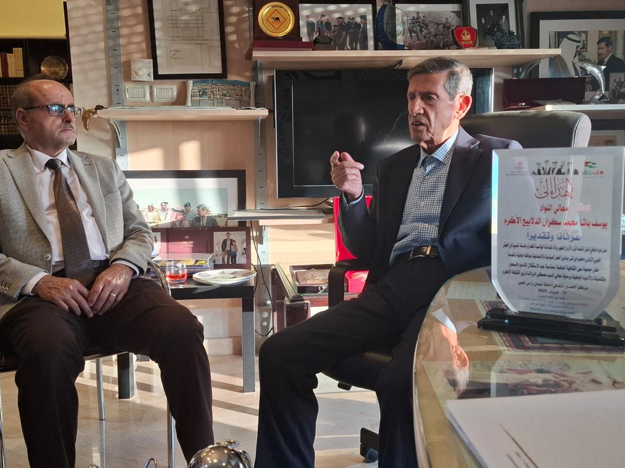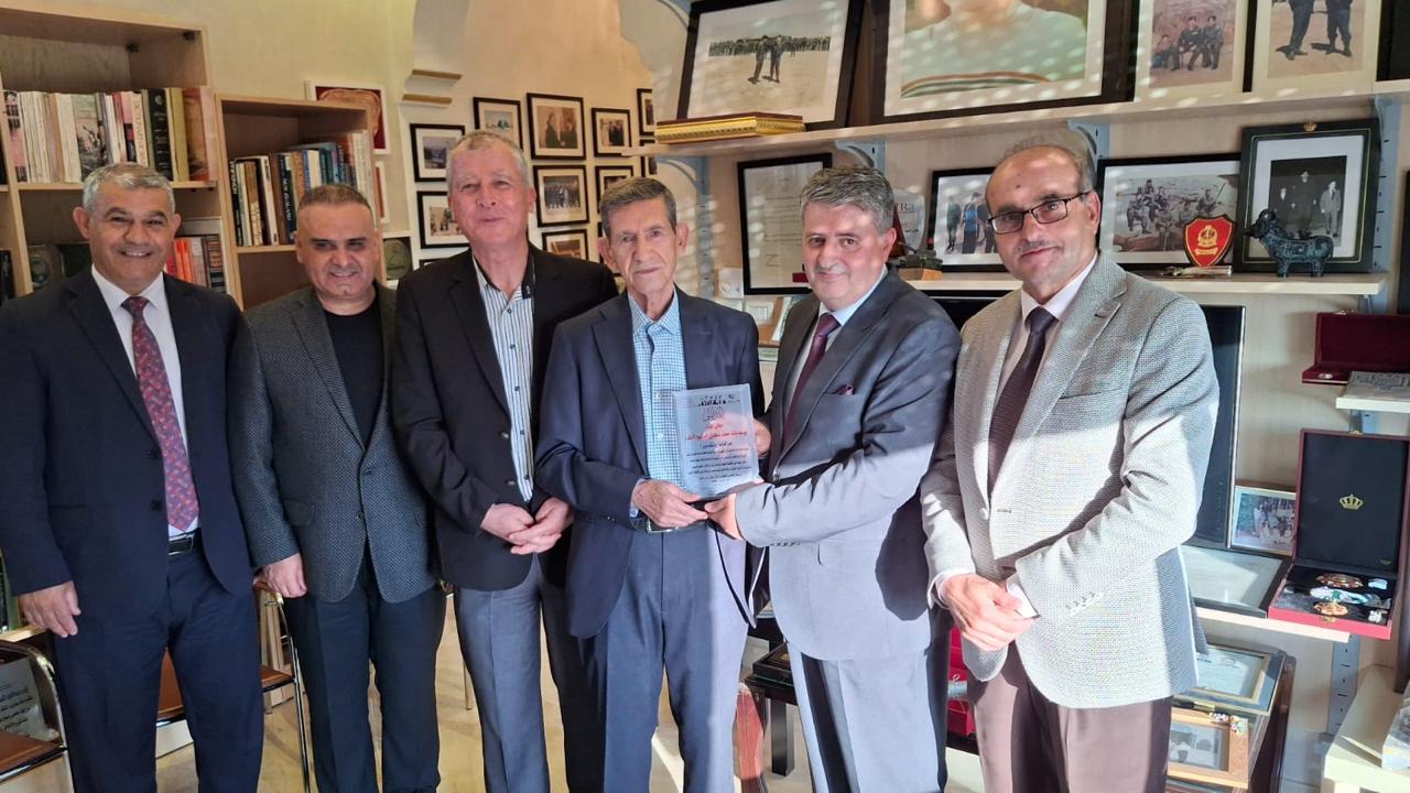 عمون - زار وفد يمثل جمعية عَون الثقافية الوطنية اللواء ركن يوسف باشا محمد السكران الدلابيح/ أبو محمد في منزله بالعاصمة عمان.