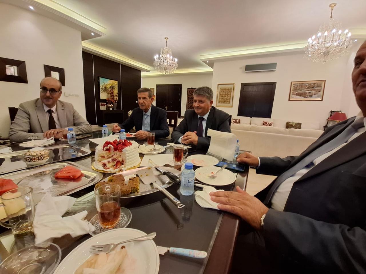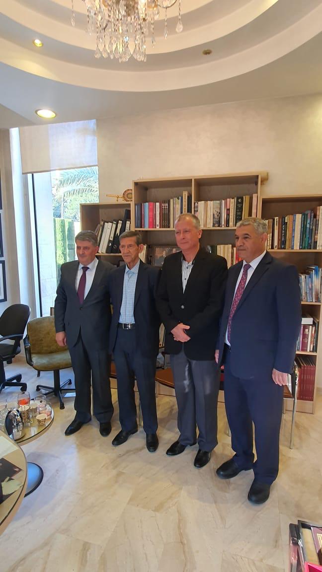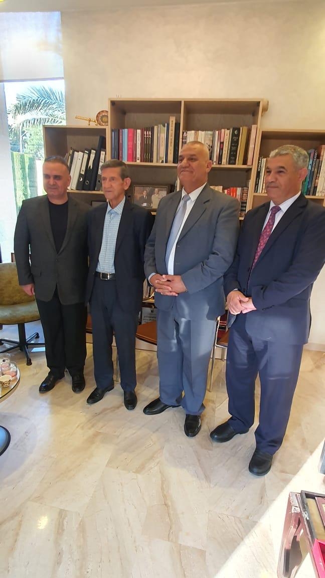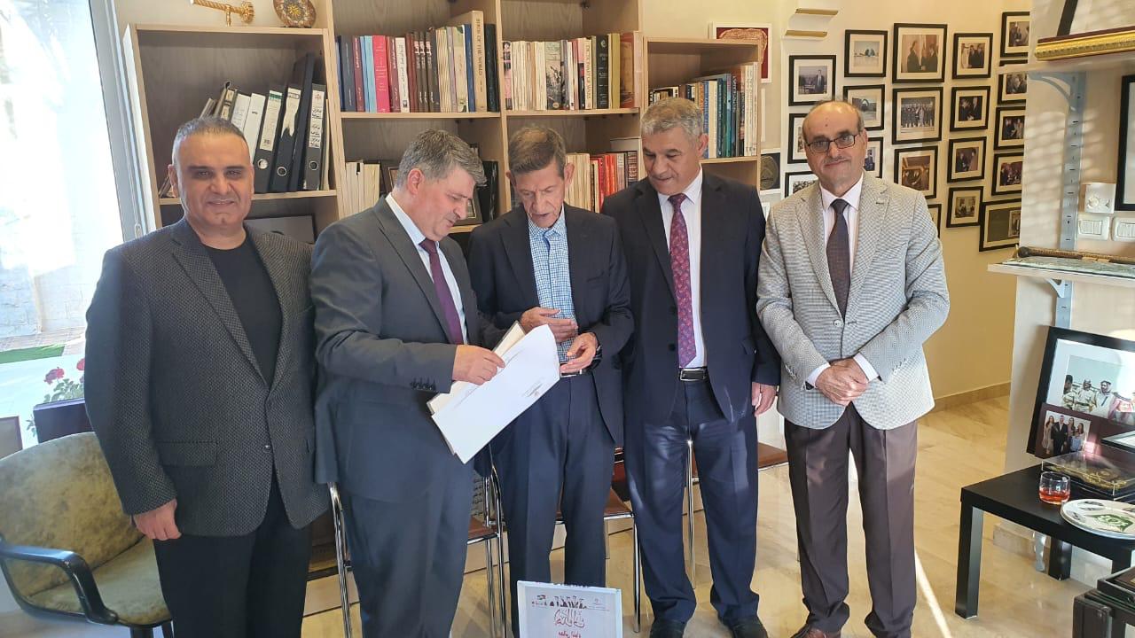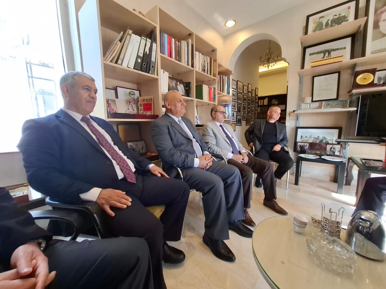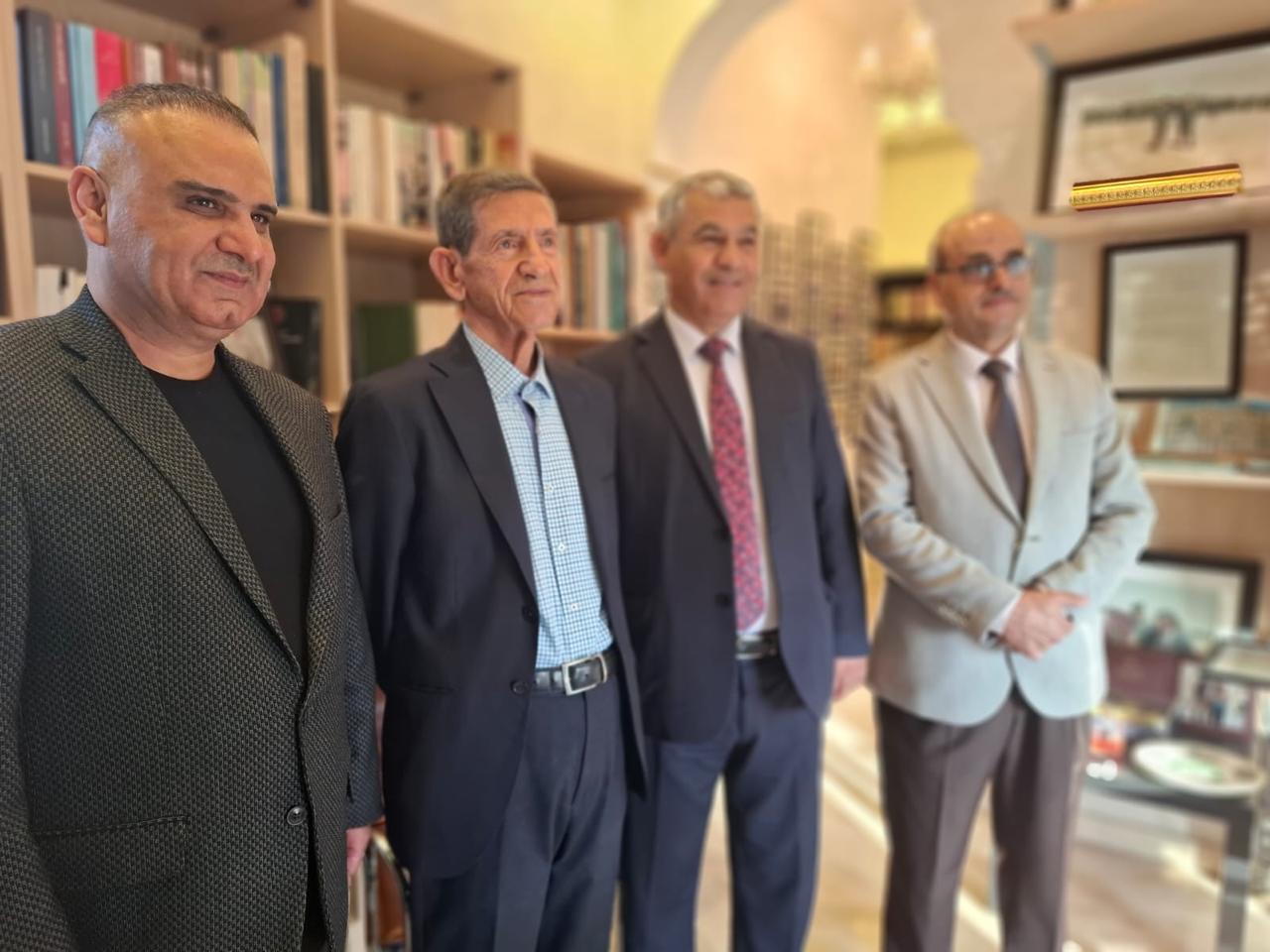 عمون - زار وفد يمثل جمعية عَون الثقافية الوطنية اللواء ركن يوسف باشا محمد السكران الدلابيح/ أبو محمد في منزله بالعاصمة عمان.
