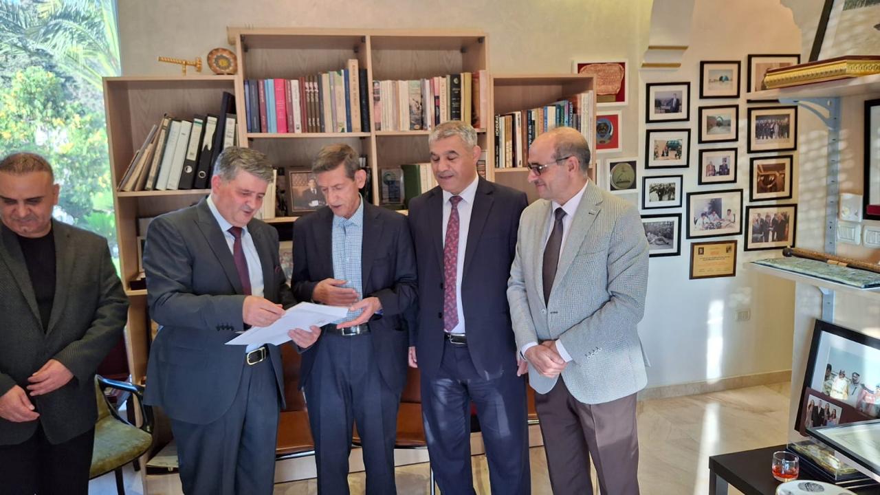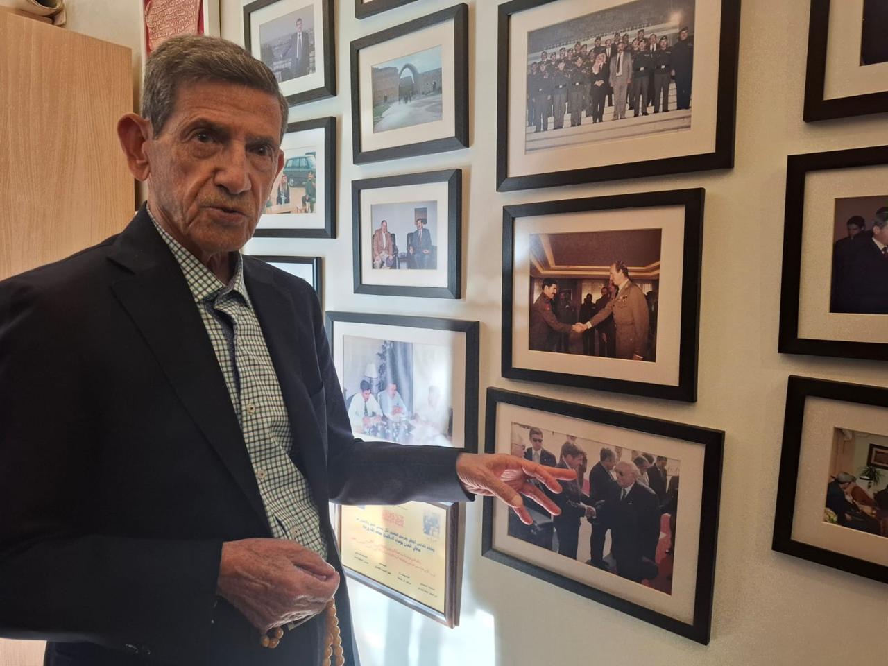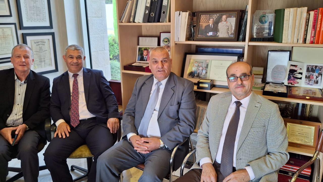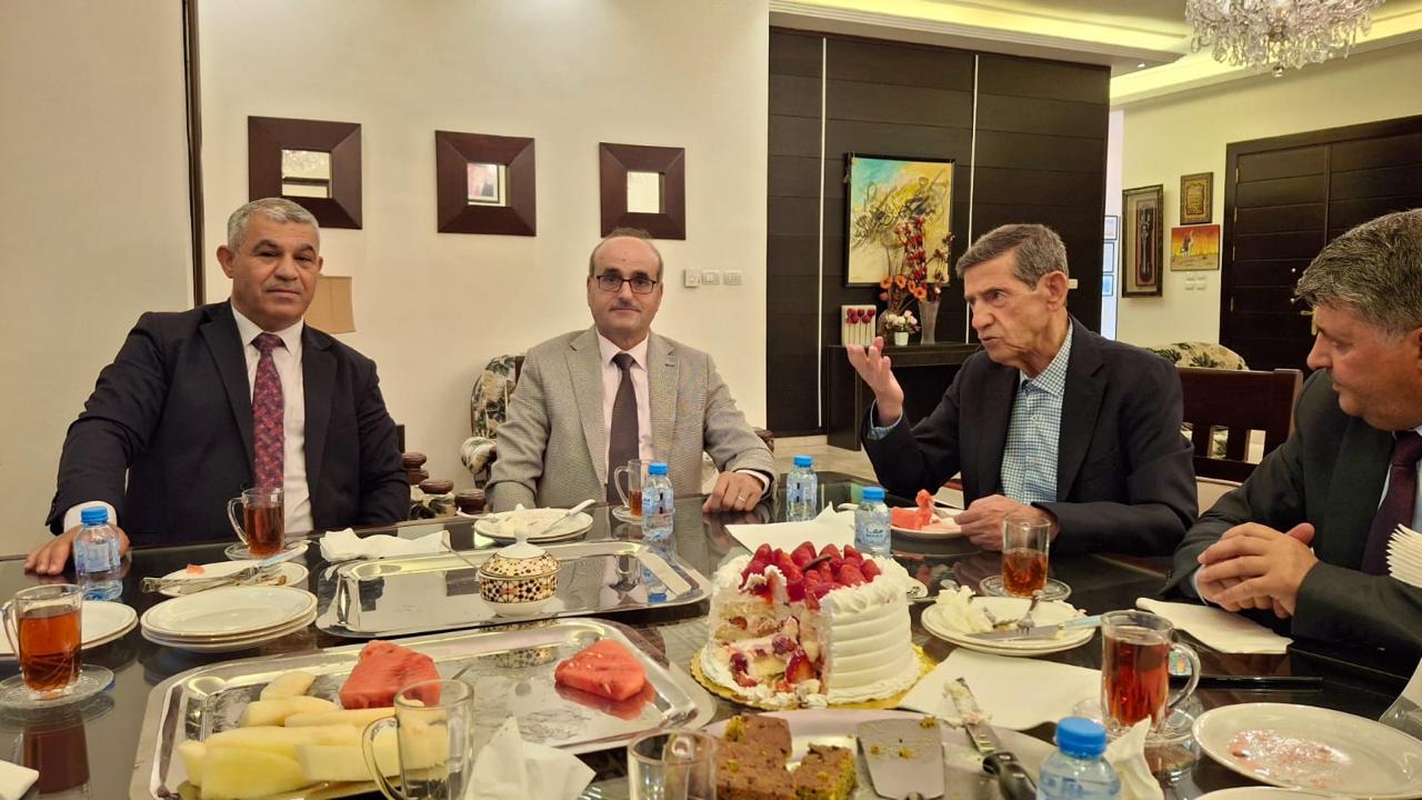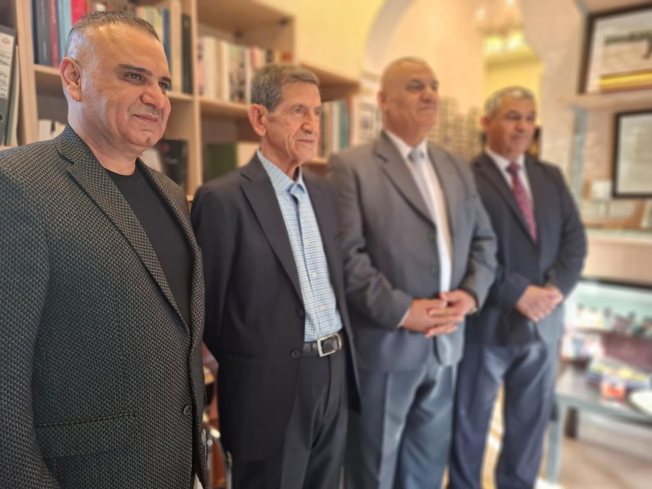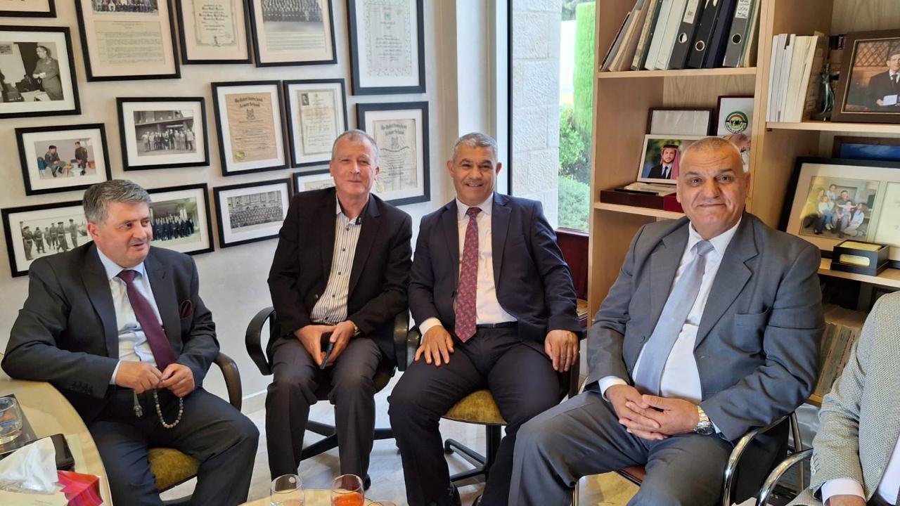 عمون - زار وفد يمثل جمعية عَون الثقافية الوطنية اللواء ركن يوسف باشا محمد السكران الدلابيح/ أبو محمد في منزله بالعاصمة عمان.