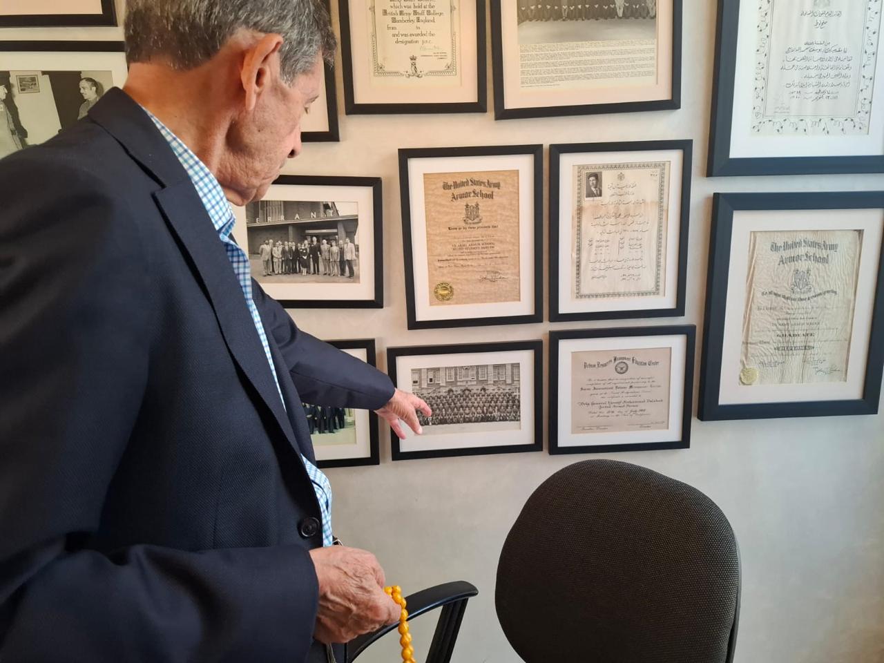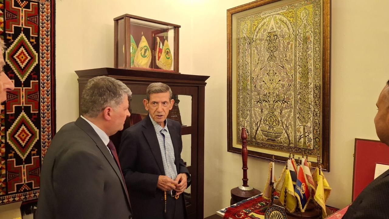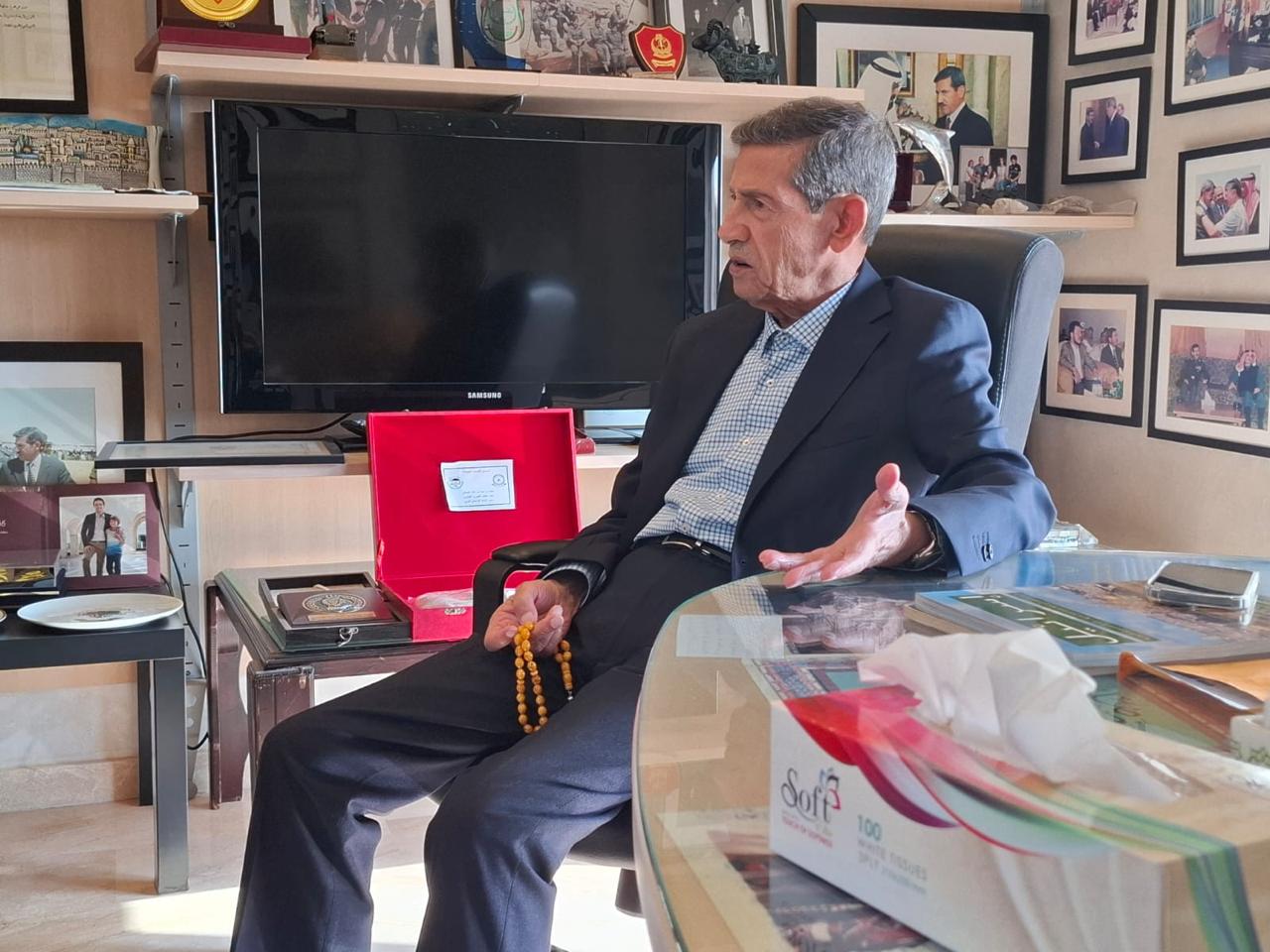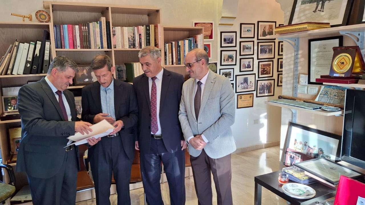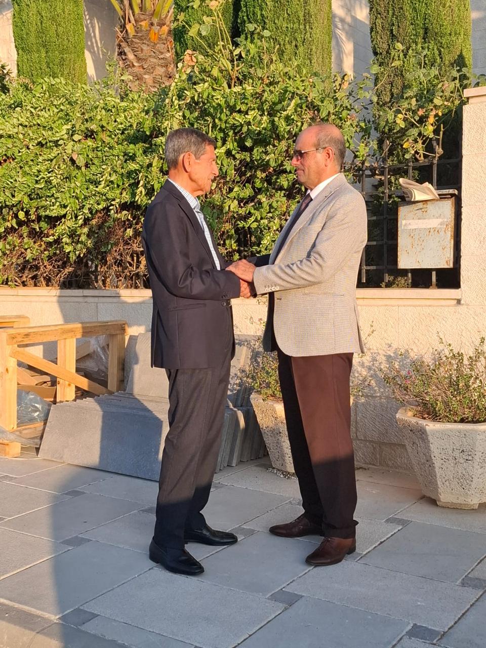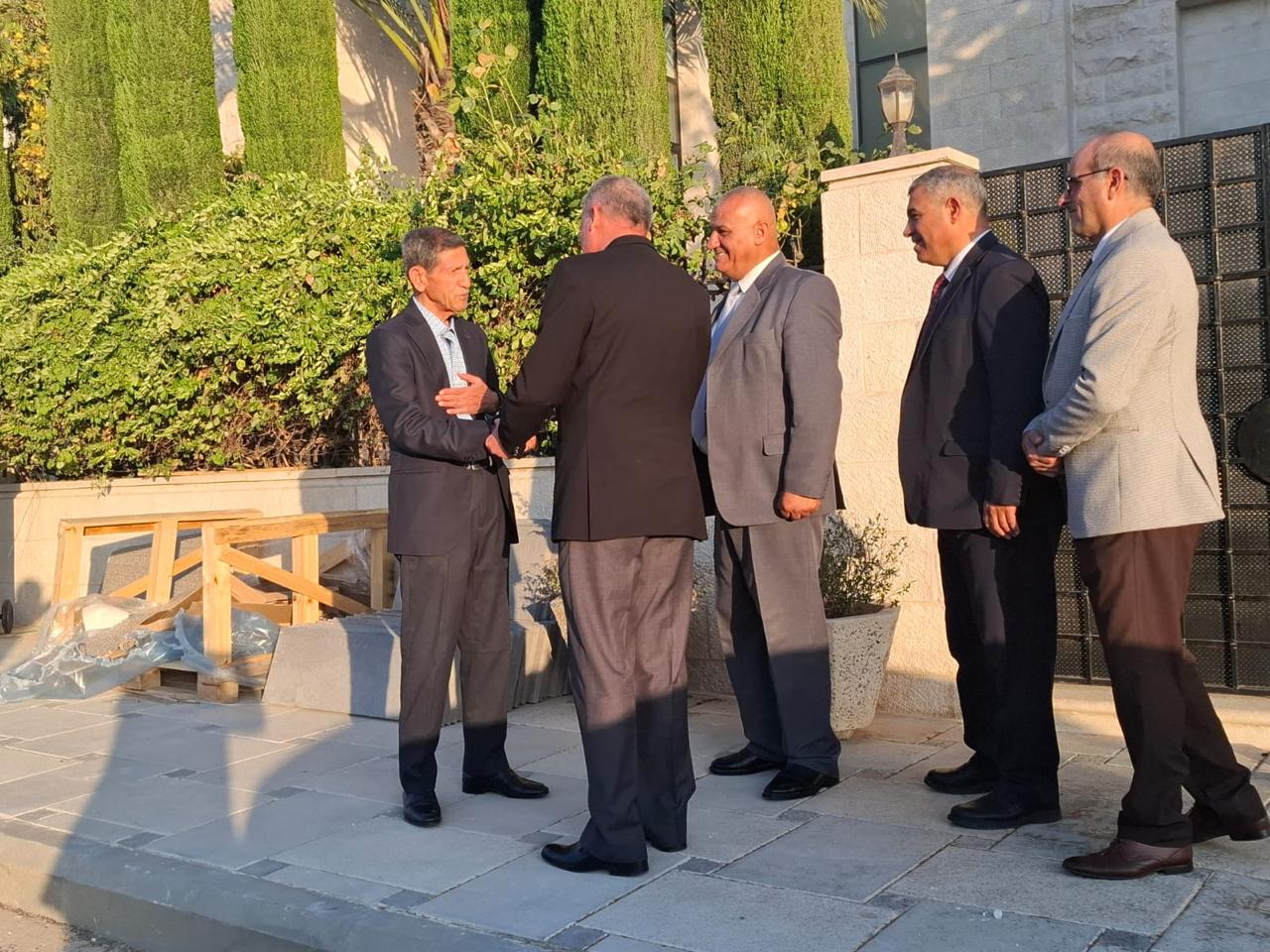 عمون - زار وفد يمثل جمعية عَون الثقافية الوطنية اللواء ركن يوسف باشا محمد السكران الدلابيح/ أبو محمد في منزله بالعاصمة عمان.