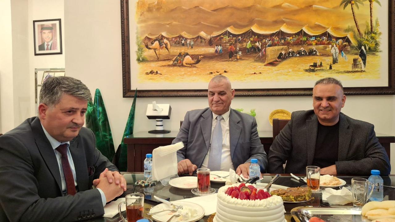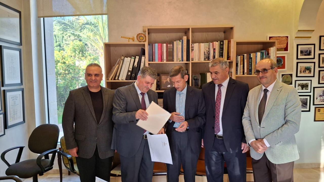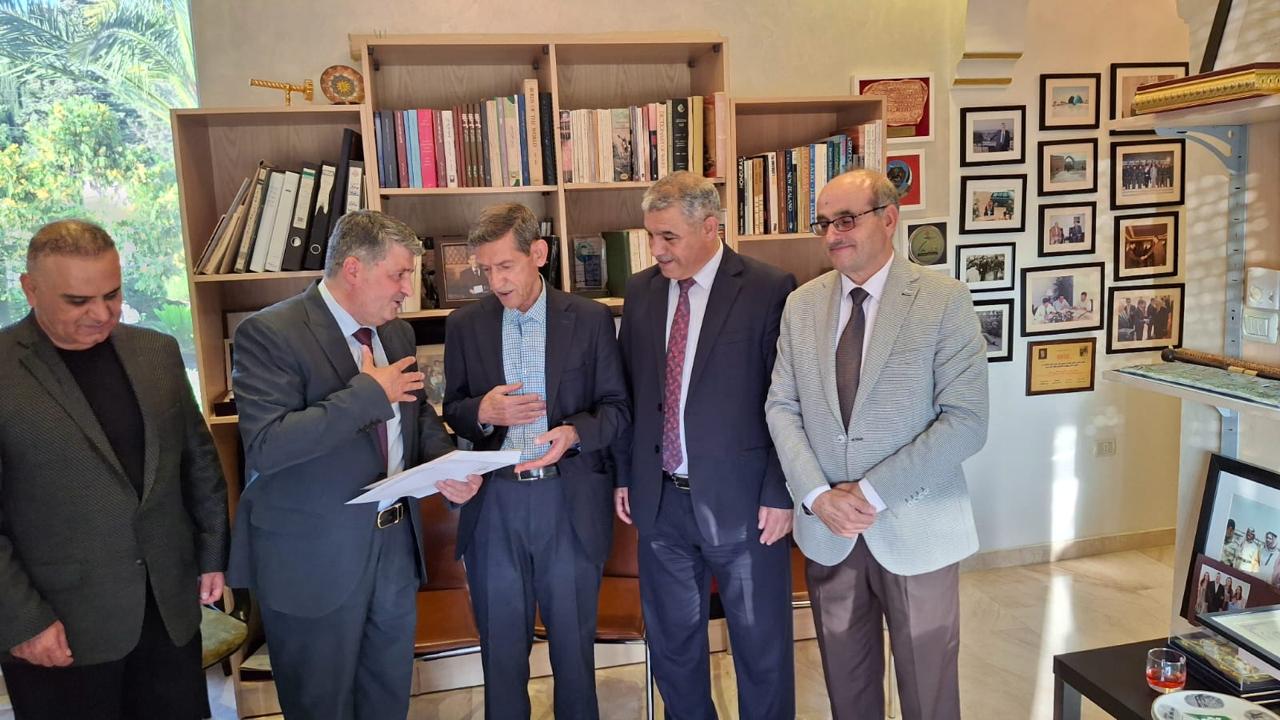 وفي نهاية الزيارة قدم اسعد ابراهيم ناجي العزام رئيس الهيئة الإدارية درع جمعية عَون الثقافية الوطنية لمعالي يوسف باشا الدلابيح بمناسبة عيد الإستقلال ال 79 لمملكتنا الأبية ... حيث كان مقرراً تكريم الدلابيح خلال الإحتفال الوطني الكبير الذي أقامته الجمعية بمناسبة عيد الإستقلال والمناسبات والأعياد الوطنية بتاريخ 14-06-2025 برعاية معالي السيد مصطفى الرواشدة وزير الثقافة إلا أن ظرف طارىء حال دون حضوره.