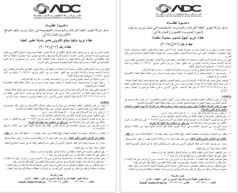 عطاءات صادرة عن شركة تطوير العقبة