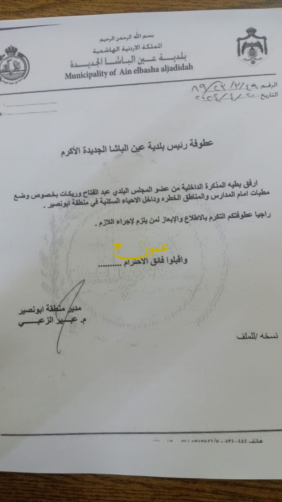 عمون - وجه مجموعة من سكان قرية أبو نصير، رسالة مفتوحة إلى وزيري التعليم والإدارة المحلية، يناشدونهما فيها بالتدخل العاجل لحل مشكلة مرورية تهدد سلامة أطفالهم في مدرسة أبو نصير الأساسية المختلطة.