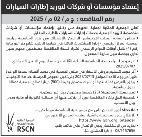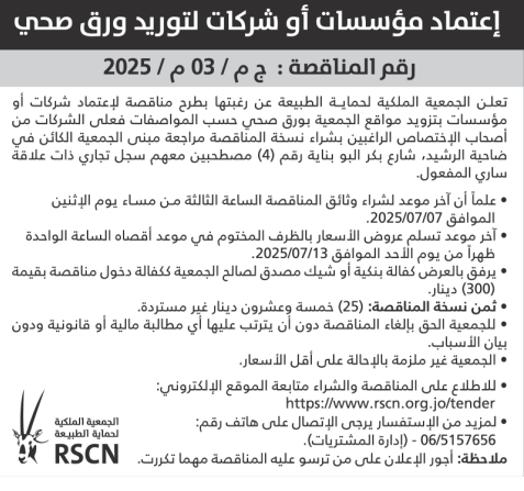 عطاءات صادرة عن الجمعية الملكية لحماية الطبيعه