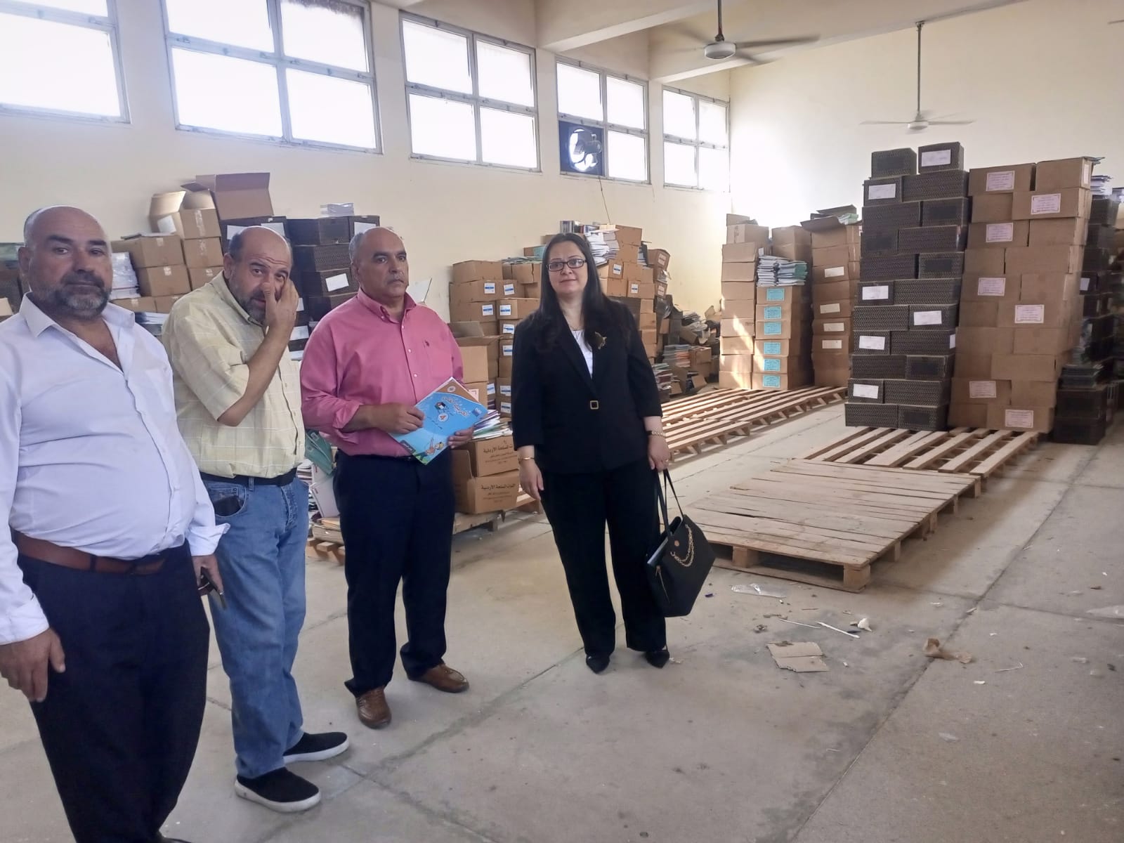واطمأنت البديوي خلال جولتها على توفر الكتب لمختلف المراحل الأساسية والثانوية وكتب مسار التعليم المهني BTEC في المستودعات.