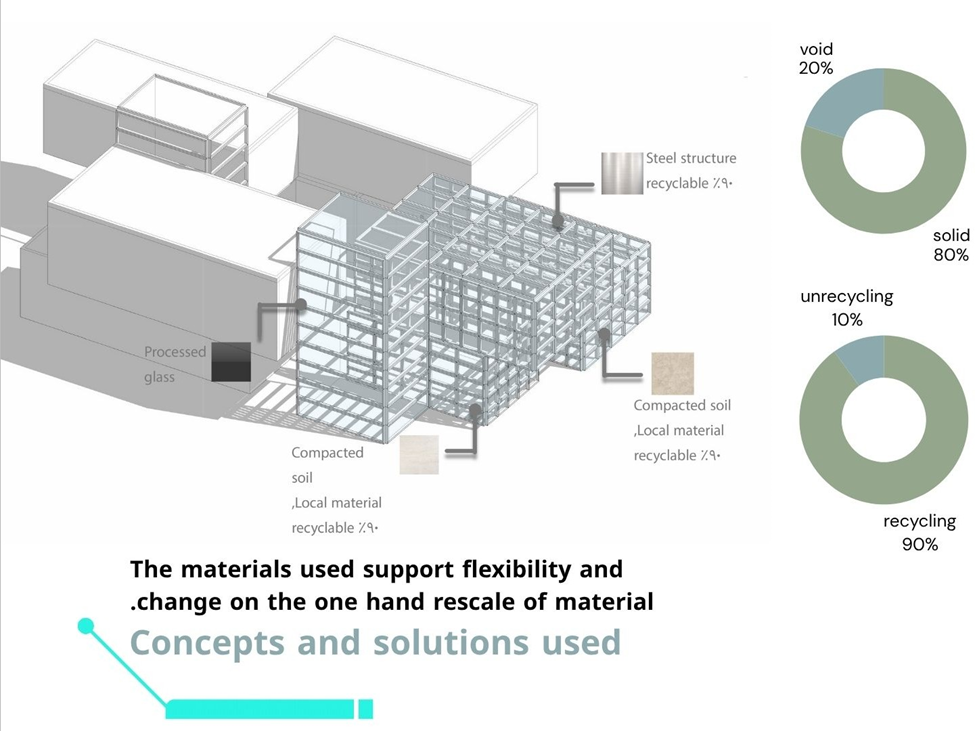 وقدّم المشروع الخريجان أحمد أبو نبوت وأحمد العساكرة، بإشراف الأستاذ الدكتورة حنان أحمد عضو هيئة التدريس في قسم هندسة العمارة في كلية الهندسة في جامعة عمان العربية، حيث تم اختياره من بين أفضل (20) مشروعًا من أصل (107) مشاريع مرشحة للعرض، من بين (406) مشروعًا تقدمت للمشاركة على المستوى الوطني، ليُعرض ضمن فعاليات المهرجان، حيث جسد المشروع نموذجًا معماريًا رائدًا يجمع بين الاستدامة والتقنيات الذكية والتصميم الحضري المبتكر، ويهدف إلى تطوير بيئة بحثية محفّزة تتماشى مع مفاهيم العمارة الخضراء، ويعتمد التصميم على مفهوم الفناء الداخلي لتعزيز الضوء الطبيعي وتحسين التهوية وتقليل استهلاك الطاقة، مع دمج الأسطح الخضراء والممرات المُظللة واستخدام مواد محلية للحد من الأثر البيئي، إلى جانب توظيف أنظمة مدعمة بالذكاء الاصطناعي لتحسين كفاءة الطاقة وتقليل النفايات في الوقت الفعلي ، حيث أظهرت دراسات المشروع أن شكل المبنى وتوجيهه أسهما في تقليل اكتساب الحرارة، وعزّز من فعالية التبريد السلبي وراحة المستخدمين، كما يتيح التصميم مرونة عالية للتوسع المستقبلي، ليشكّل بذلك نموذجًا يُحتذى به في العمارة المستدامة والذكية في منطقة الشرق الأوسط.