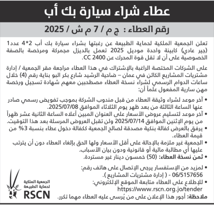 عطاء صادر عن الجمعية الملكية لحماية الطبيعة