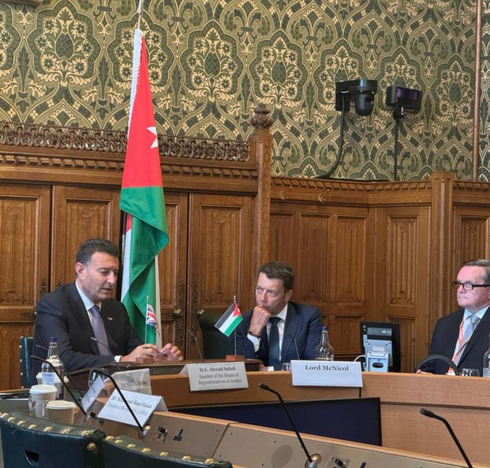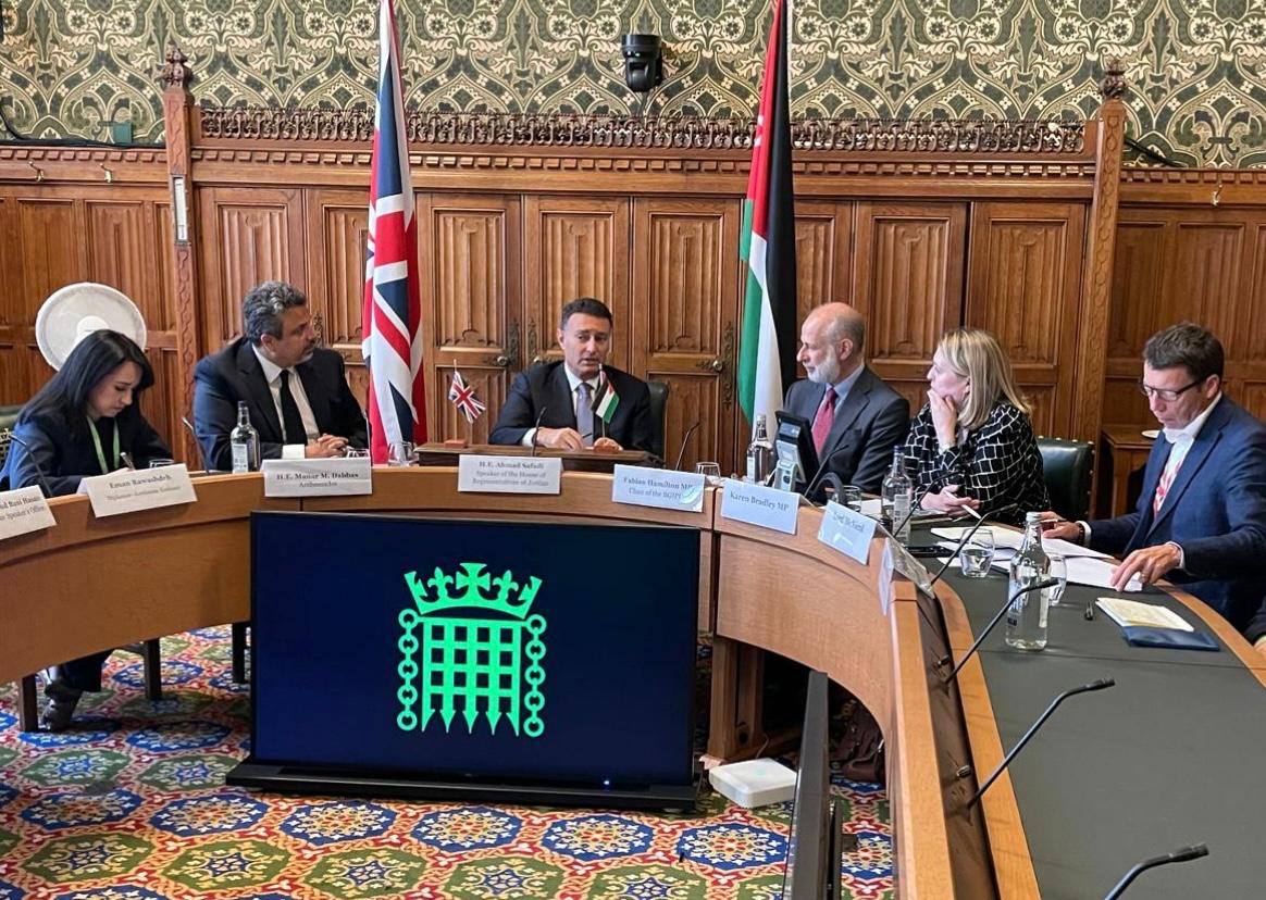 عمون - عقد رئيس مجلس النواب أحمد الصفدي في لندن عدة لقاءات ضمن زيارته الرسمية لمجلس العموم البريطاني، حيث اجتمع مع رئيسة لجنة الشؤون الخارجية إيميلي ثورنبيري، ورئيس المجموعة البرلمانية البريطانية في الاتحاد البرلمان الدولي فابيان هاميلتون، ورئيس لجنة الدفاع تانم أنجيت سينغ ديسي، والمبعوث التجاري البريطاني للأردن اللورد إيان مكينيكول، ووزير شؤون الشرق الأوسط هاميش فالكونر.