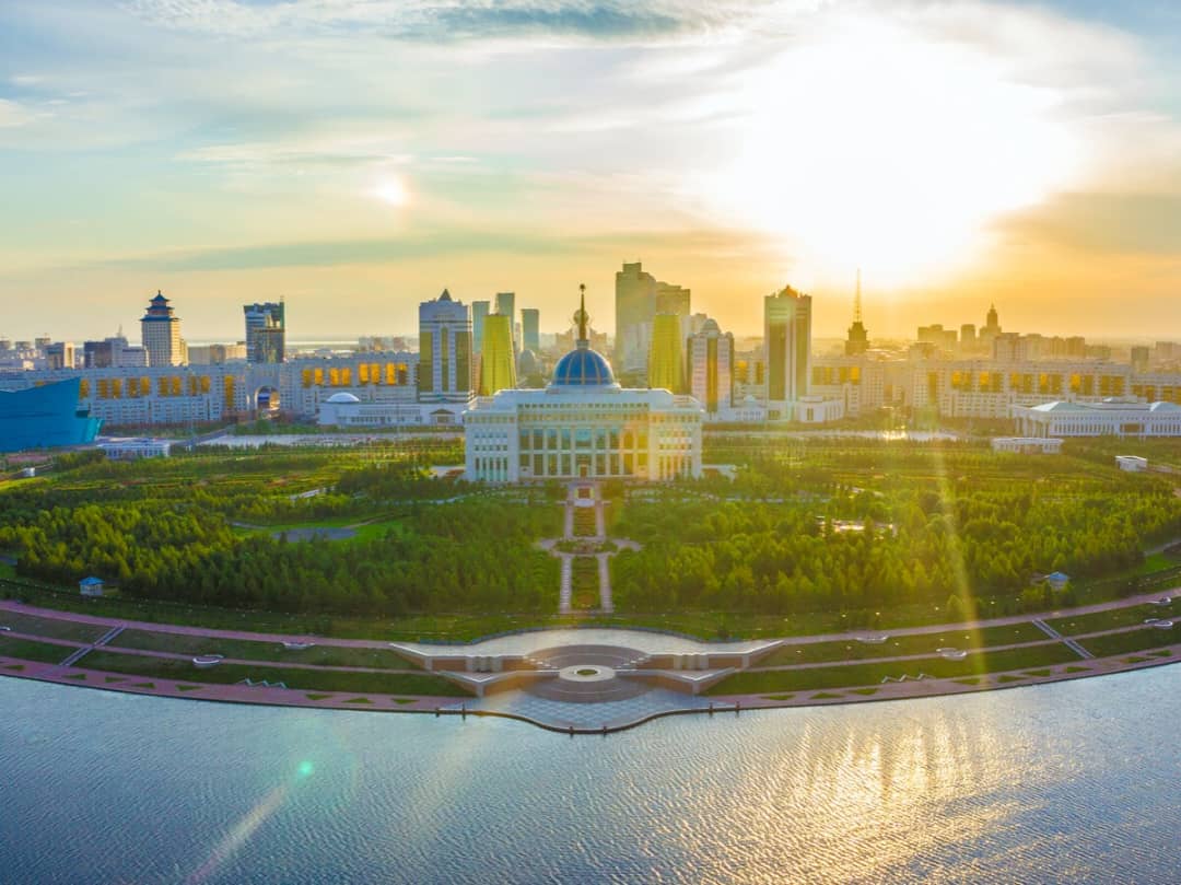أستانا في قلب كازاخستان، على ضفاف نهر إيشيم الذي يروي أراضيها الخصبة، مانحًا المدينة سحرًا طبيعيًا يعانق هندستها المعمارية.