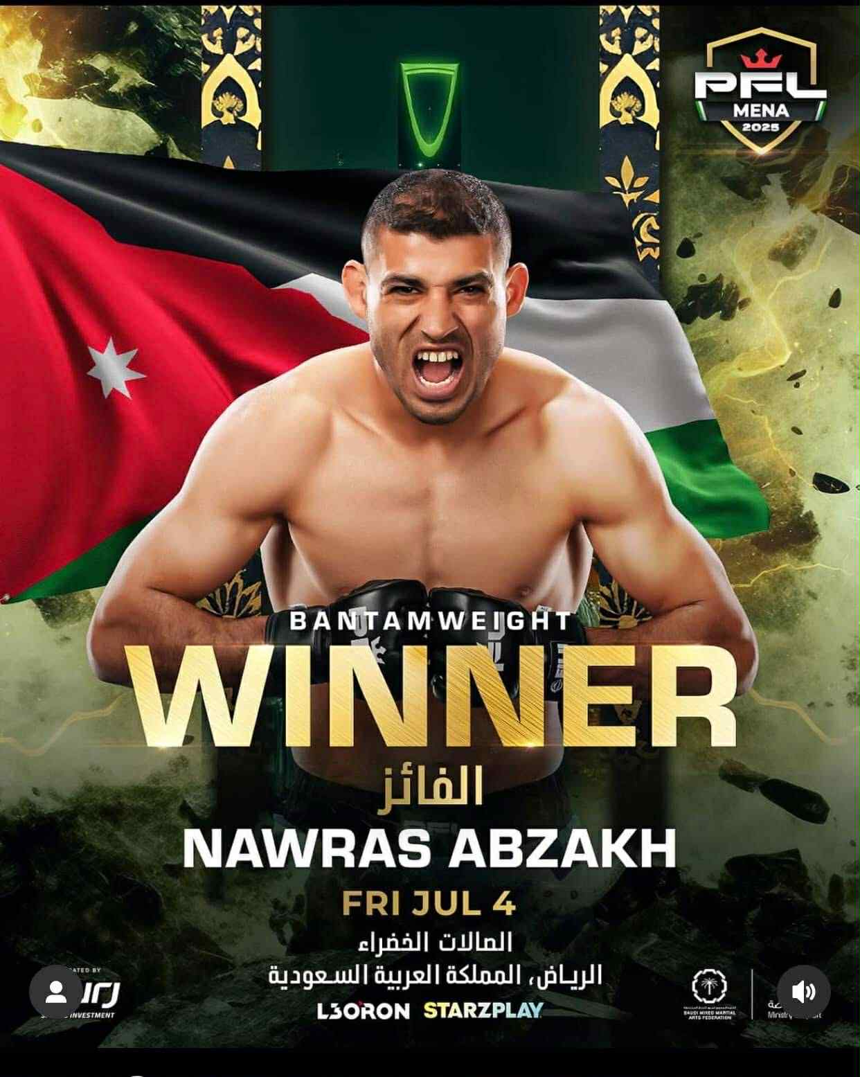 ويعد هذا الفوز محطة مهمة في مسيرة اللاعب نورس أبزاخ، الذي يواصل تحقيق الإنجازات على المستوى الدولي، ما يعزز حضور الرياضة الأردنية في البطولات العالمية ابزاخ يحمل سجل احترافي مكون من ١٤ فوزًا، سبعة منها متتالية بالإخضاع . "بترا"
