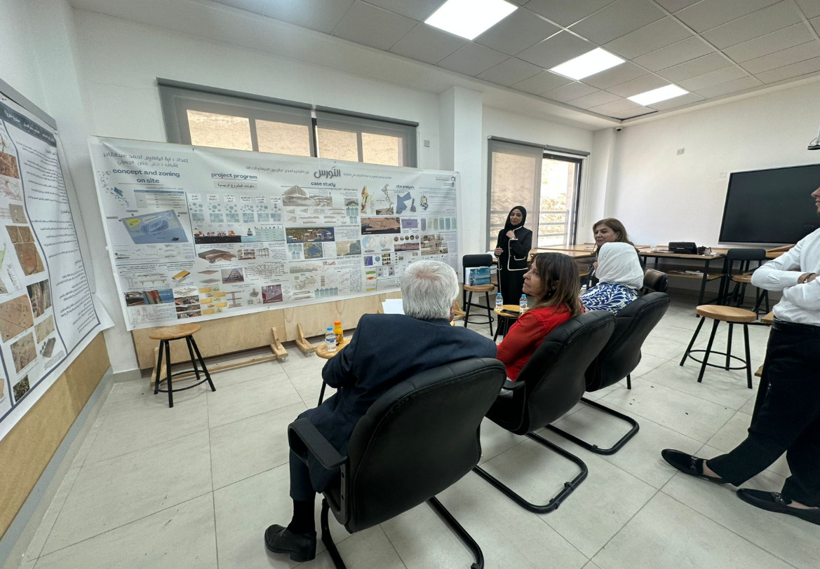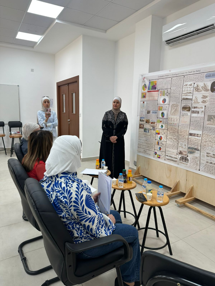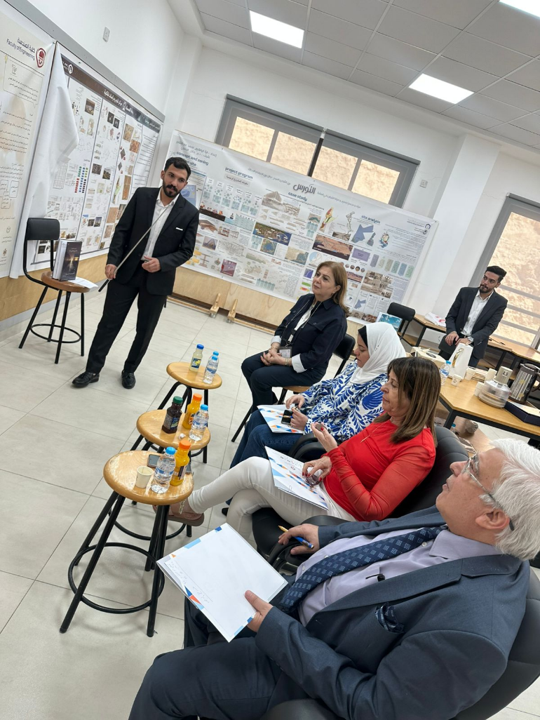 عمون - تماشياً مع رسالة كلية الهندسة في جامعة عمان العربية في تقديم تعليم وتعلم وإنتاج بحثي هندسي متميز، وتعزيزاً للرؤية الأكاديمية لقسم هندسة العمارة وربطها بأهداف الأمم المتحدة للتنمية المستدامة وتنفيذاً لتوجيهات الاستاذ الدكتور محمد الوديان رئيس جامعة عمان العربية وبمتابعة من الدكتور أنور العساف عميد كلية الهندسة، ناقش طلبة قسم هندسة العمارة مشاريع التخرج (1) تحت إشراف الأستاذ الدكتورة حنان احمد وبحضور لجنة التحكيم المكوّنة من المهندسة أسماء السيّد، والمهندسة ديانا الطرزي، والمهندس عماد دراوشة.
