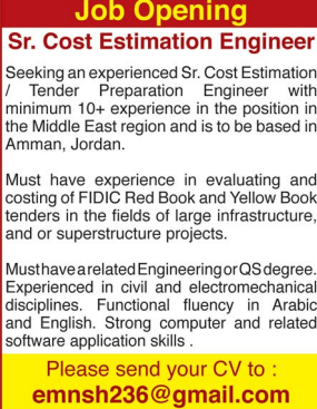 مطلوب مهندس تقدير تكاليف