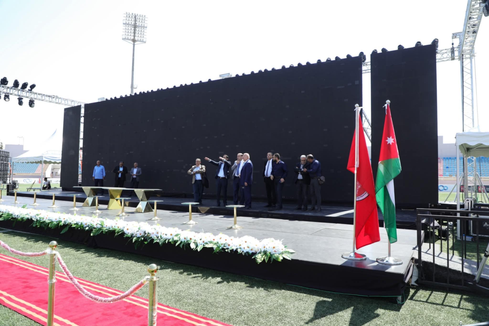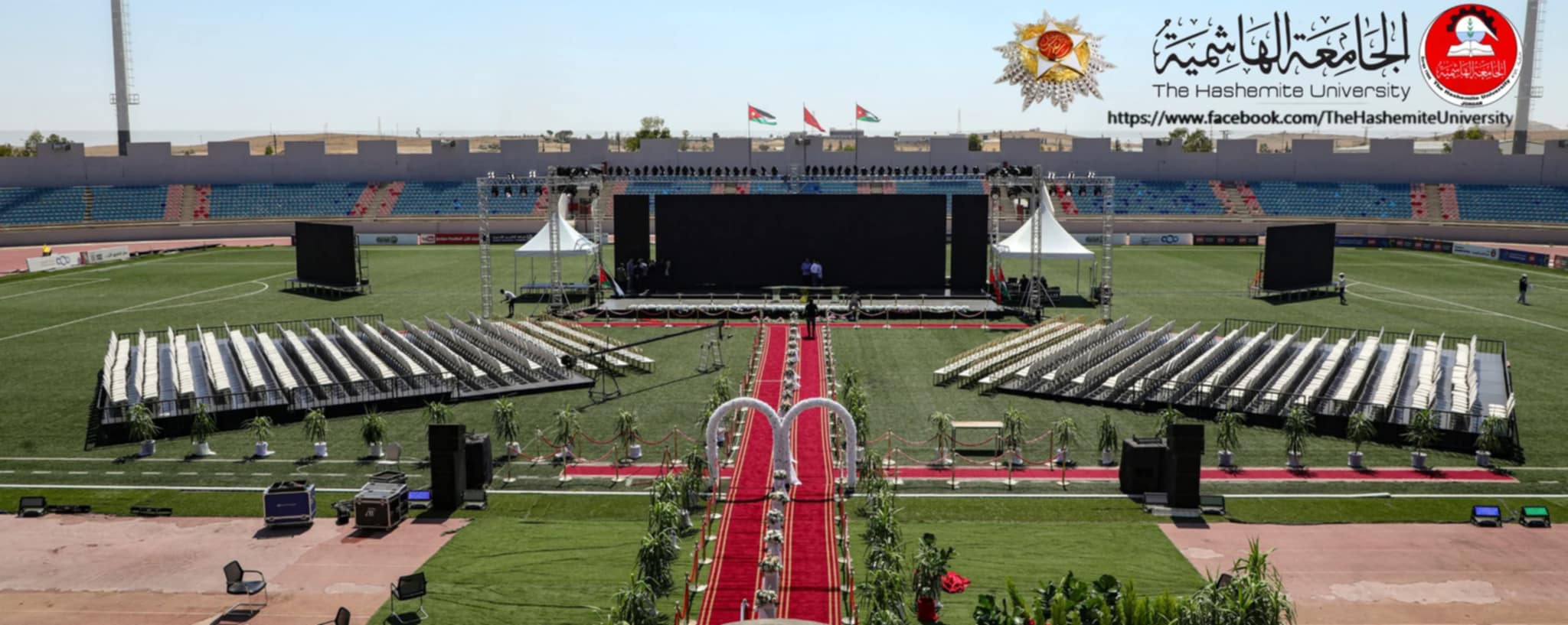 عمون - تفقد الأستاذ الدكتور خالد الحياري رئيس الجامعة الهاشمية الترتيبات النهائية لحفل تخريج الفوج السابع والعشرين من طلبة الجامعة، خلال جولة ميدانية إلى موقع الحفل في إستاد مدينة الأمير محمد للشباب في الزرقاء، رافقه فيها الأستاذ الدكتور عوني اطرادات نائب رئيس الجامعة، والسيد عبد الرحمن أبودلبوح مساعد الرئيس، وبحضور عميد شؤون الطلبة / رئيس اللجنة العليا لحفل التخريج الأستاذ الدكتور باسل المشاقبة وكوادر اللجان المُنظمة.
