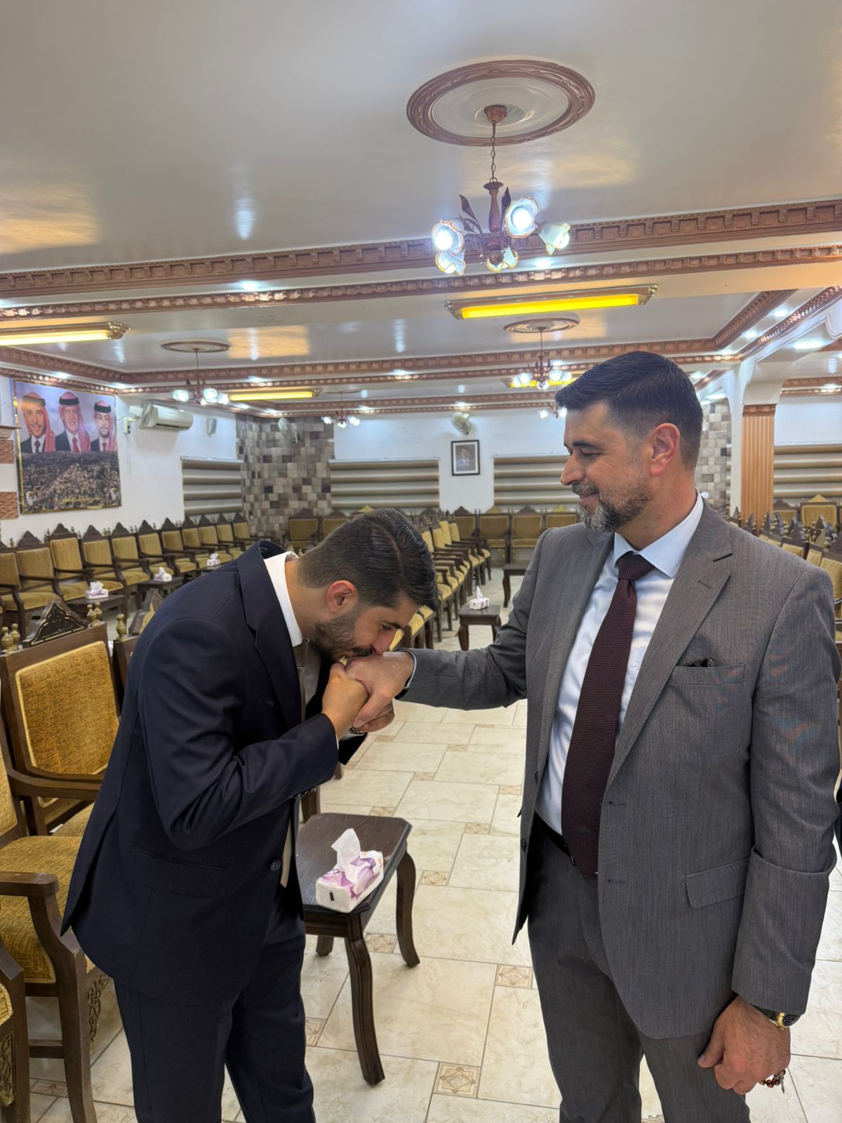 عمون - توجهت جاهة كريمة من عشائر سحاب وعشيرة الصبرات المحارمة وأقاربهم وأنسبائهم ومحبيهم إلى عشيرة العطيات الكرام لطلب يد كريمة السيد مراد العطيات |