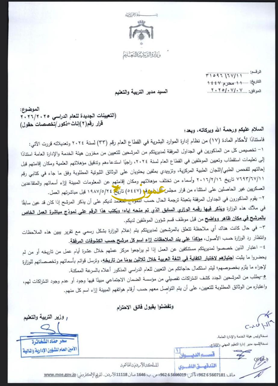 التربية تعلن دفعة تعيينات من مخزون هيئة الخدمة (أسماء)07-07-2025 08:48 PM