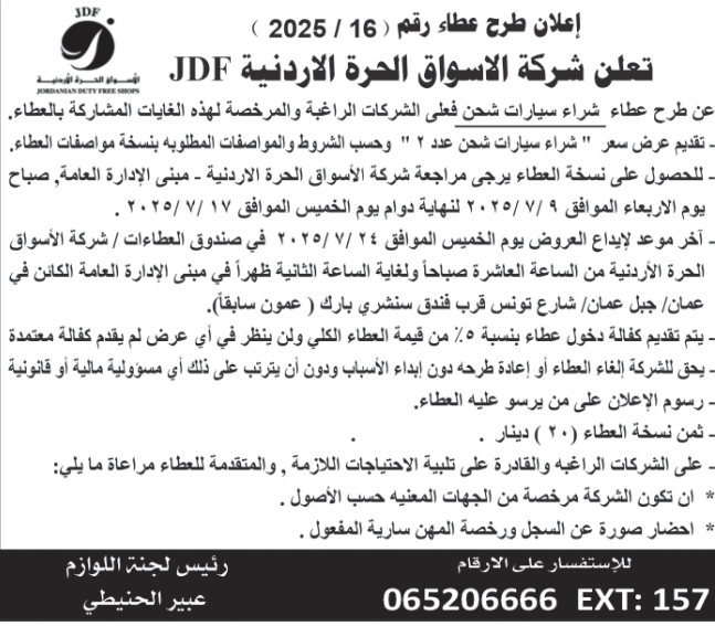 عطاء صادر عن الاسواق الحرة الاردنية