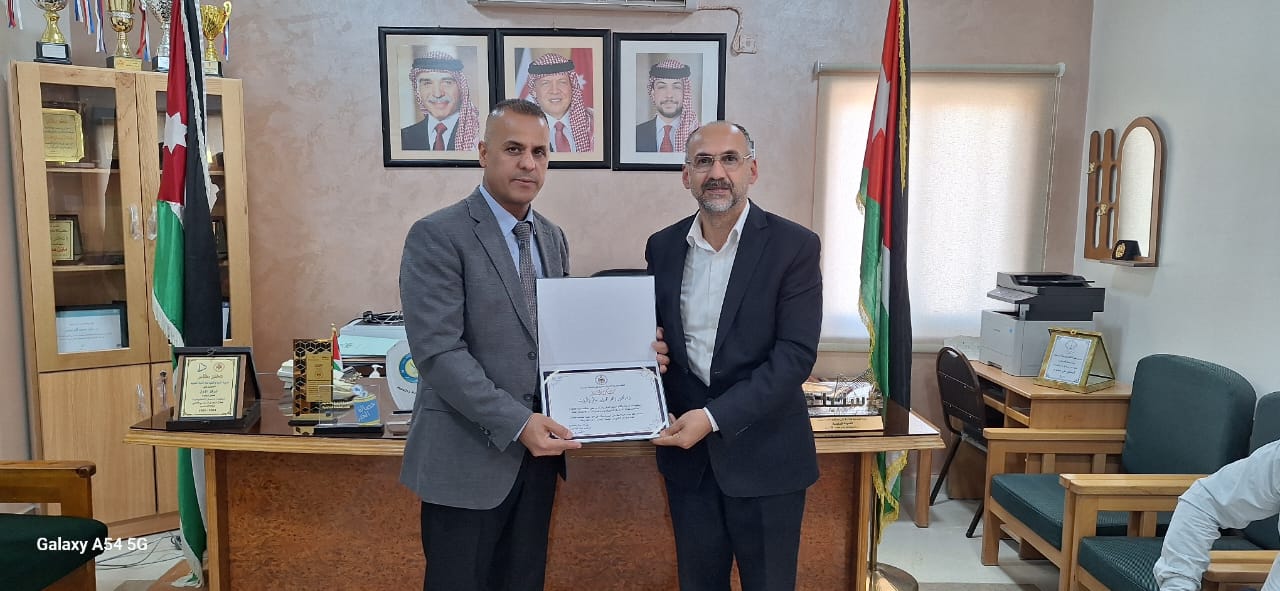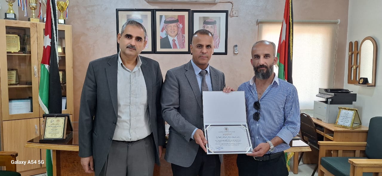 عمون - من شادي نبيل- كَرَّمَ مدير التربية والتعليم للواء الشونة الجنوبية الدكتور مازن هديرس، في مكتبه الخميس ، 10/7/ 2025لجان الوزارة المشاركة بإمتحانات الثانوية العامة للدورة الصيفية،والكادر الإداري والتعليمي لجهودهم المبذولة في متابعة امتحانات الثانوية العامة 2024/2025بحضور مدير الشؤون التعليمية الدكتور شاهر الدريدي،ورئيس قسم الاختبارات والامتحانات الدكتور محمد ثلجي. |