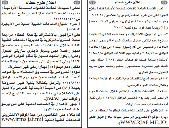عطاءات صادرة عن القيادة العامة للقوات المسلحة