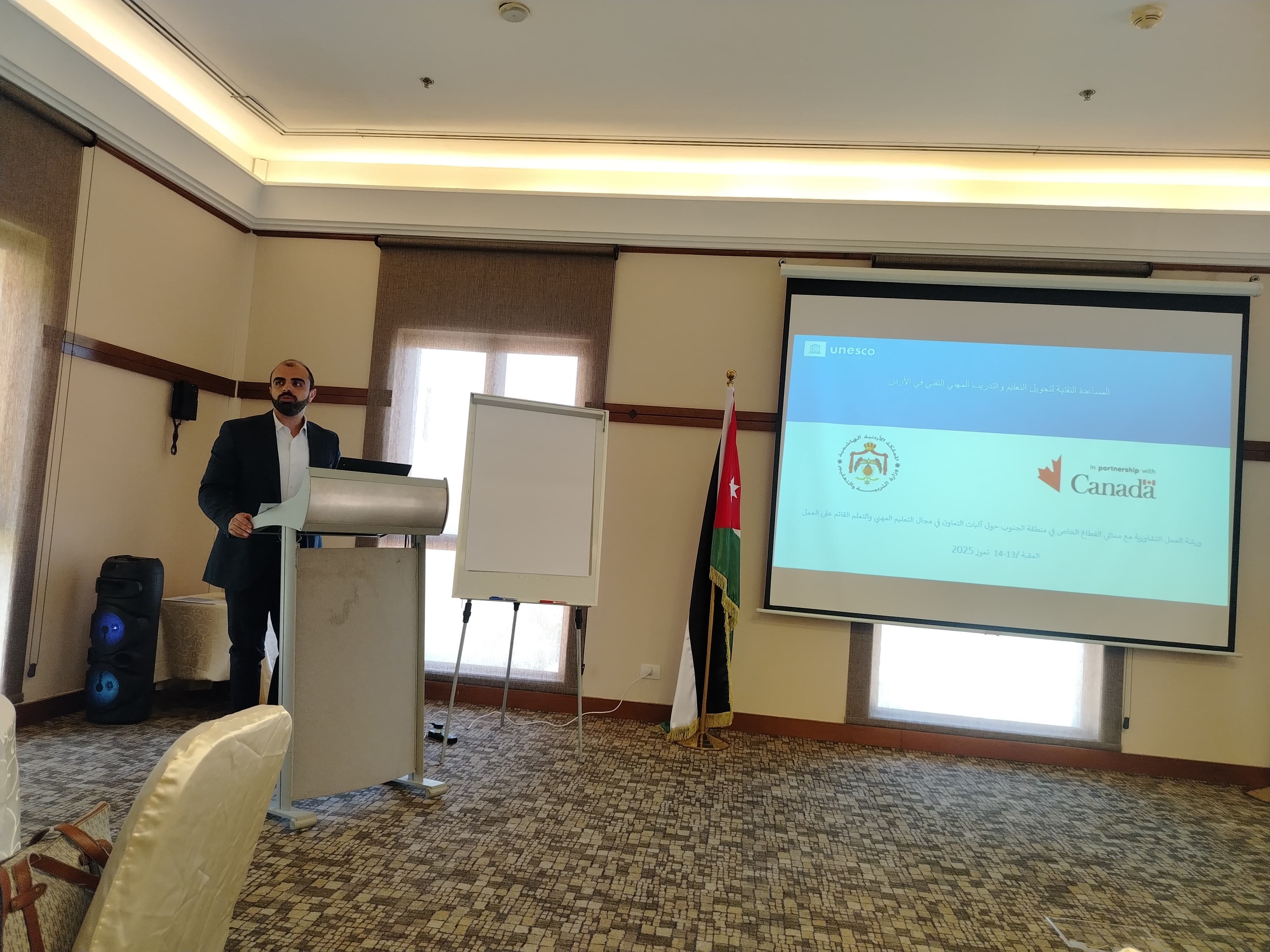 وتأتي هذه الورشة ضمن مشروع مشترك مع "اليونسكو" ووزارة الشؤون العالمية الكندية، يستمر لأربع سنوات تحت عنوان: "تحويل التعليم والتدريب المهني والتقني في الأردن"، ويهدف إلى تطوير نظام التعليم المهني ليتماشى مع متطلبات سوق العمل، ويعالج قضايا البطالة والتفاوت بين الجنسين.