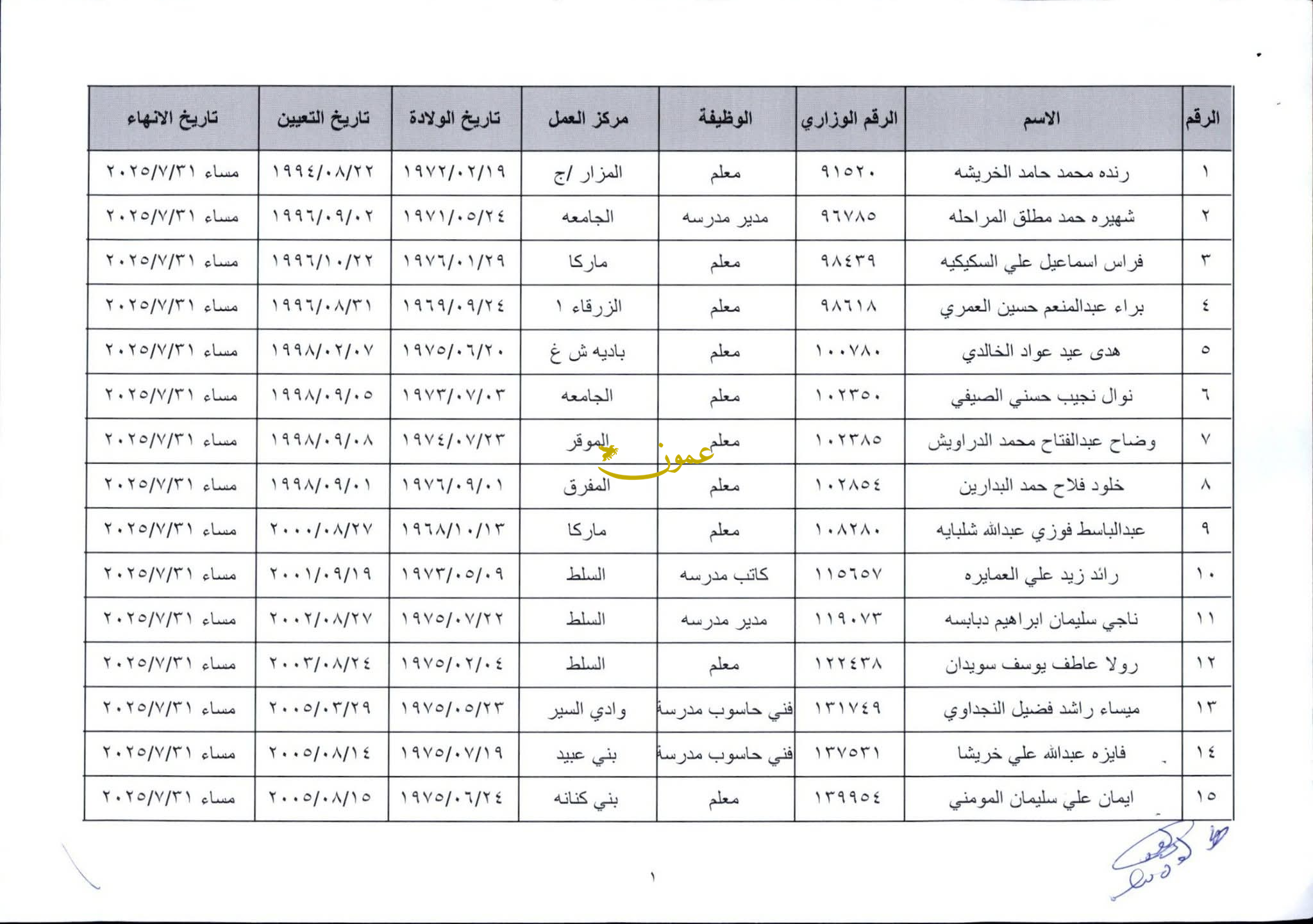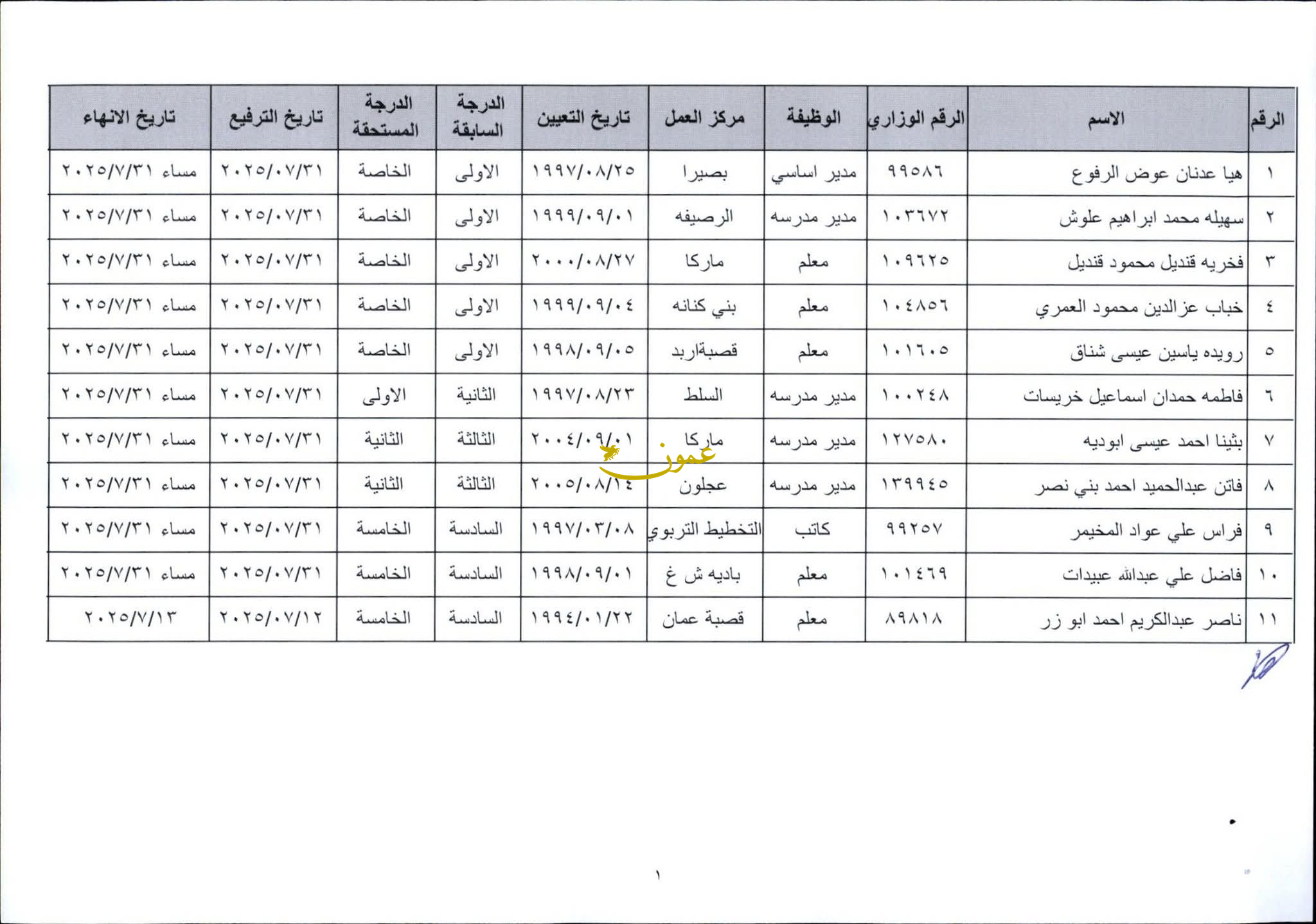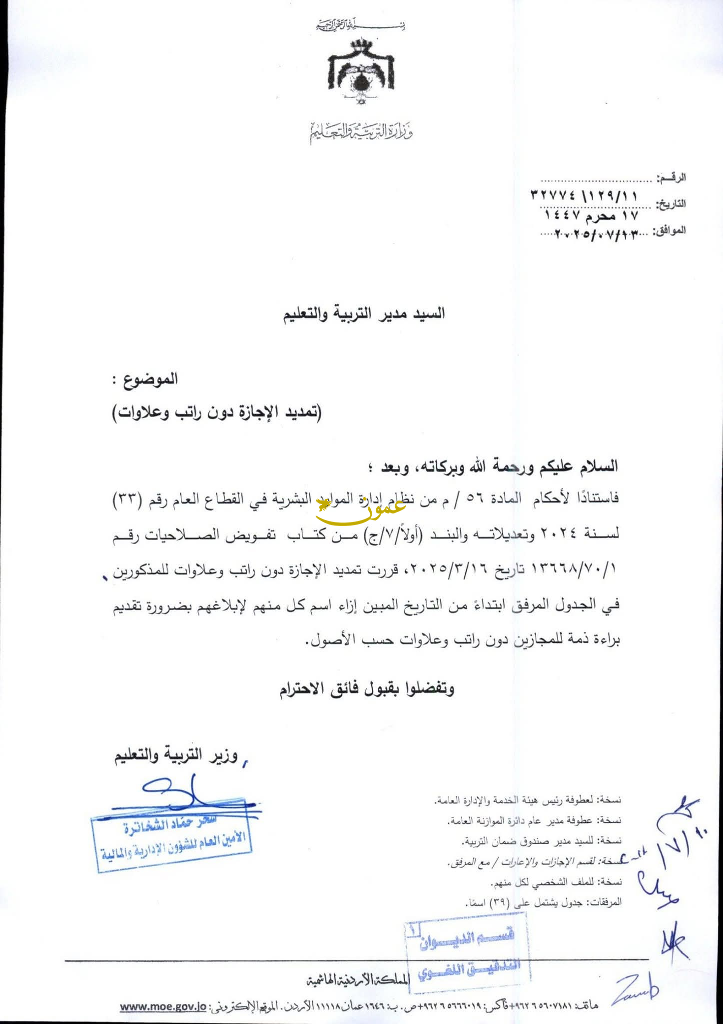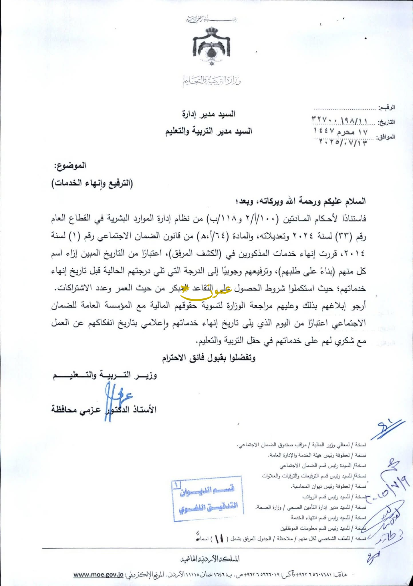 إنهاء خدمات وترفيعات وتمديد إجازات لموظفين في التربية (أسماء)13-07-2025 11:25 PM