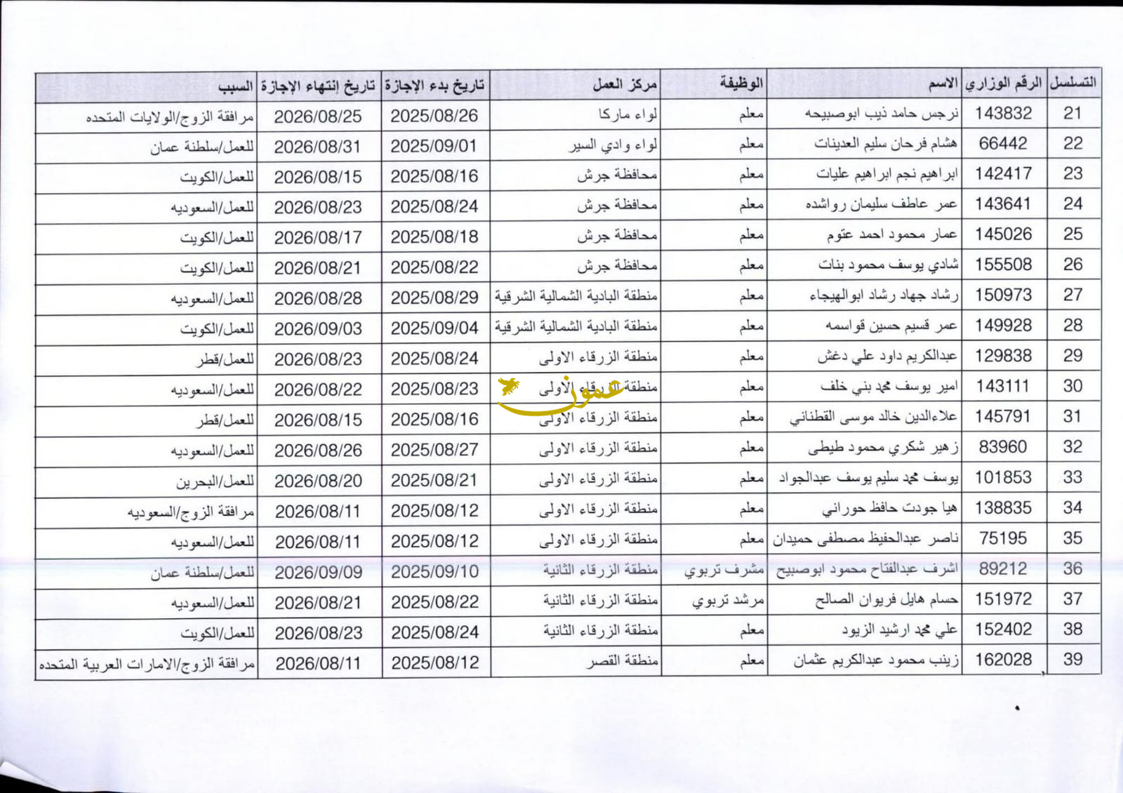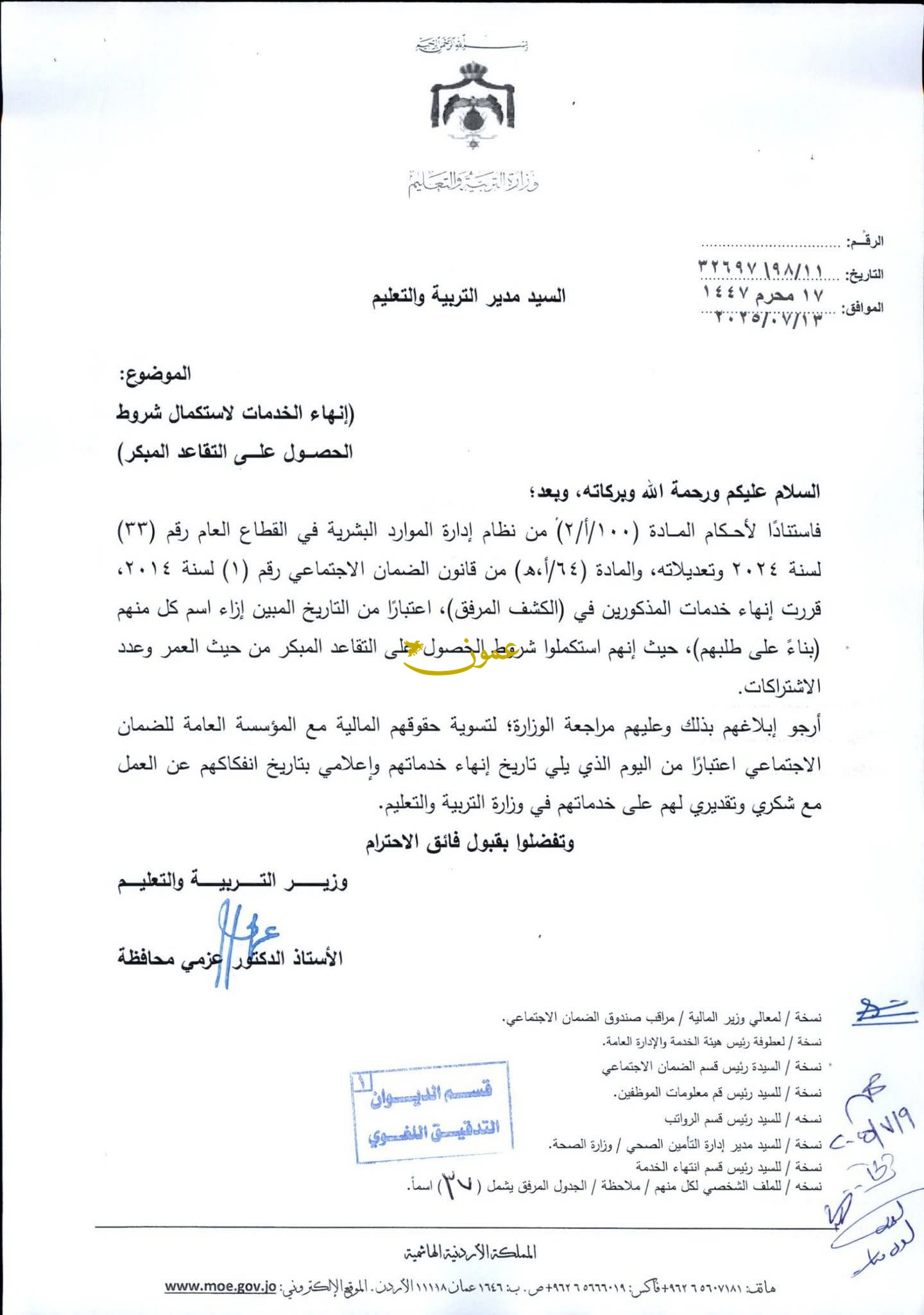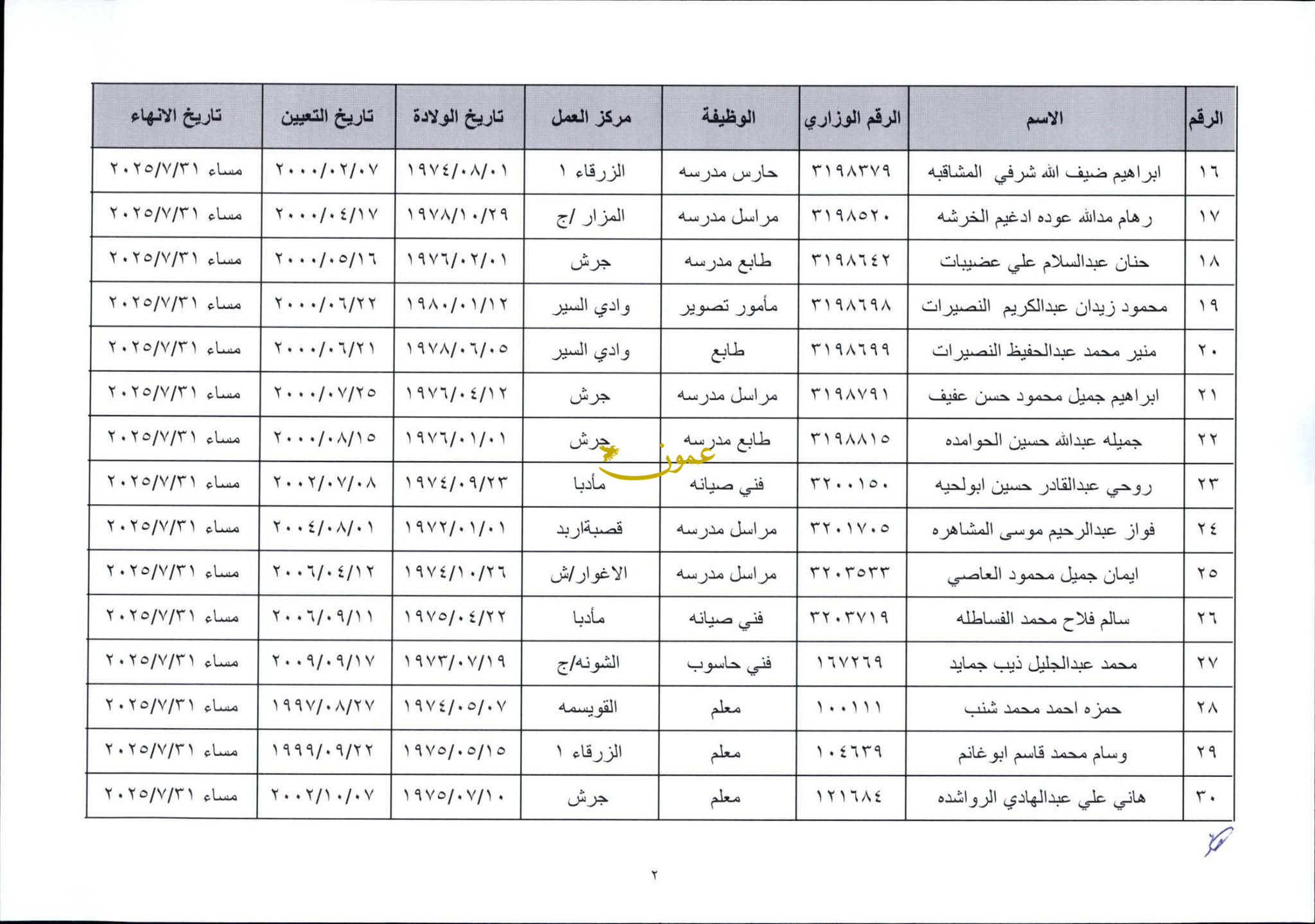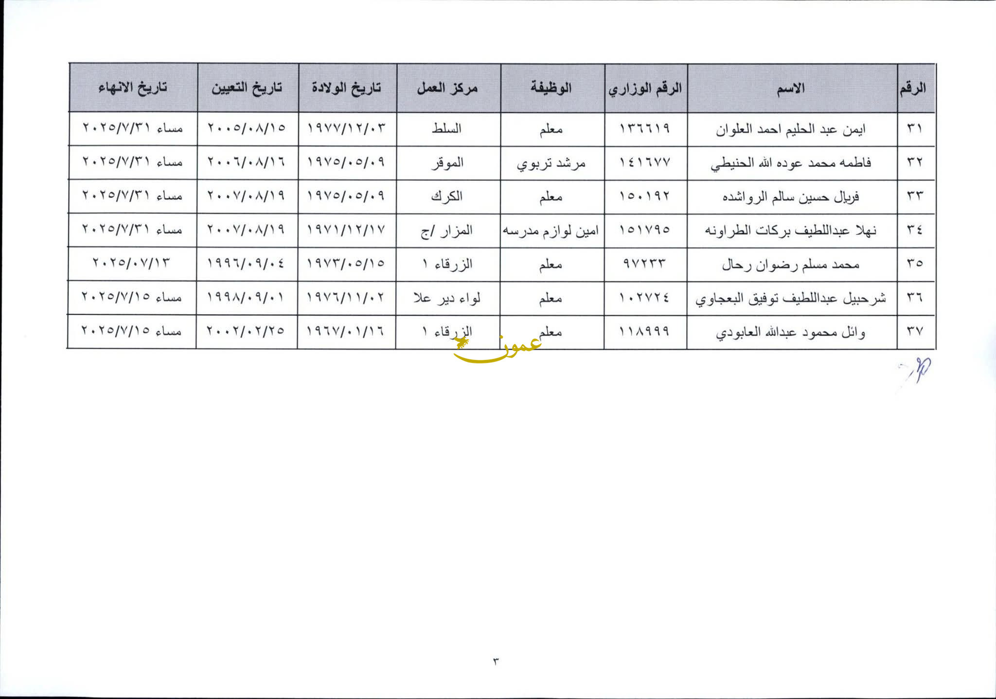 إنهاء خدمات وترفيعات وتمديد إجازات لموظفين في التربية (أسماء)13-07-2025 11:25 PM