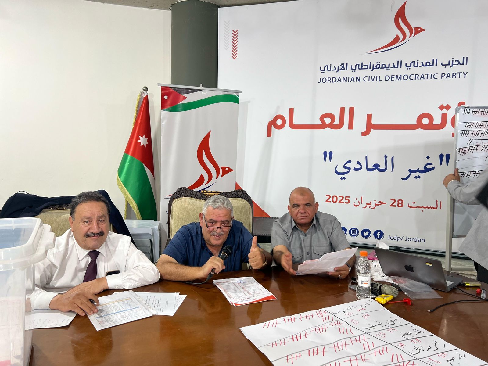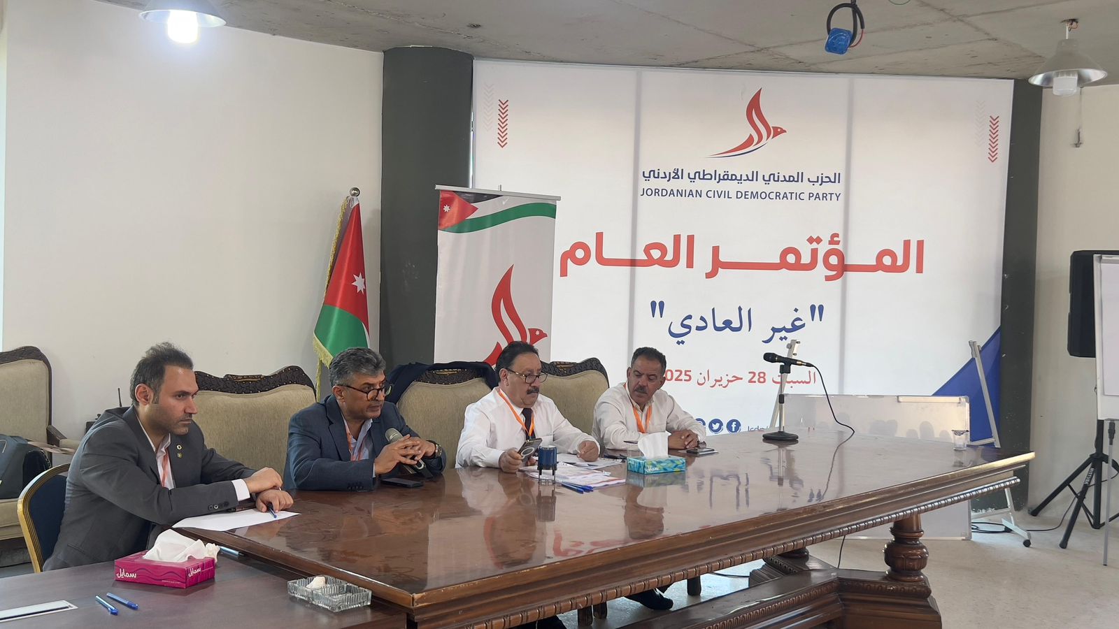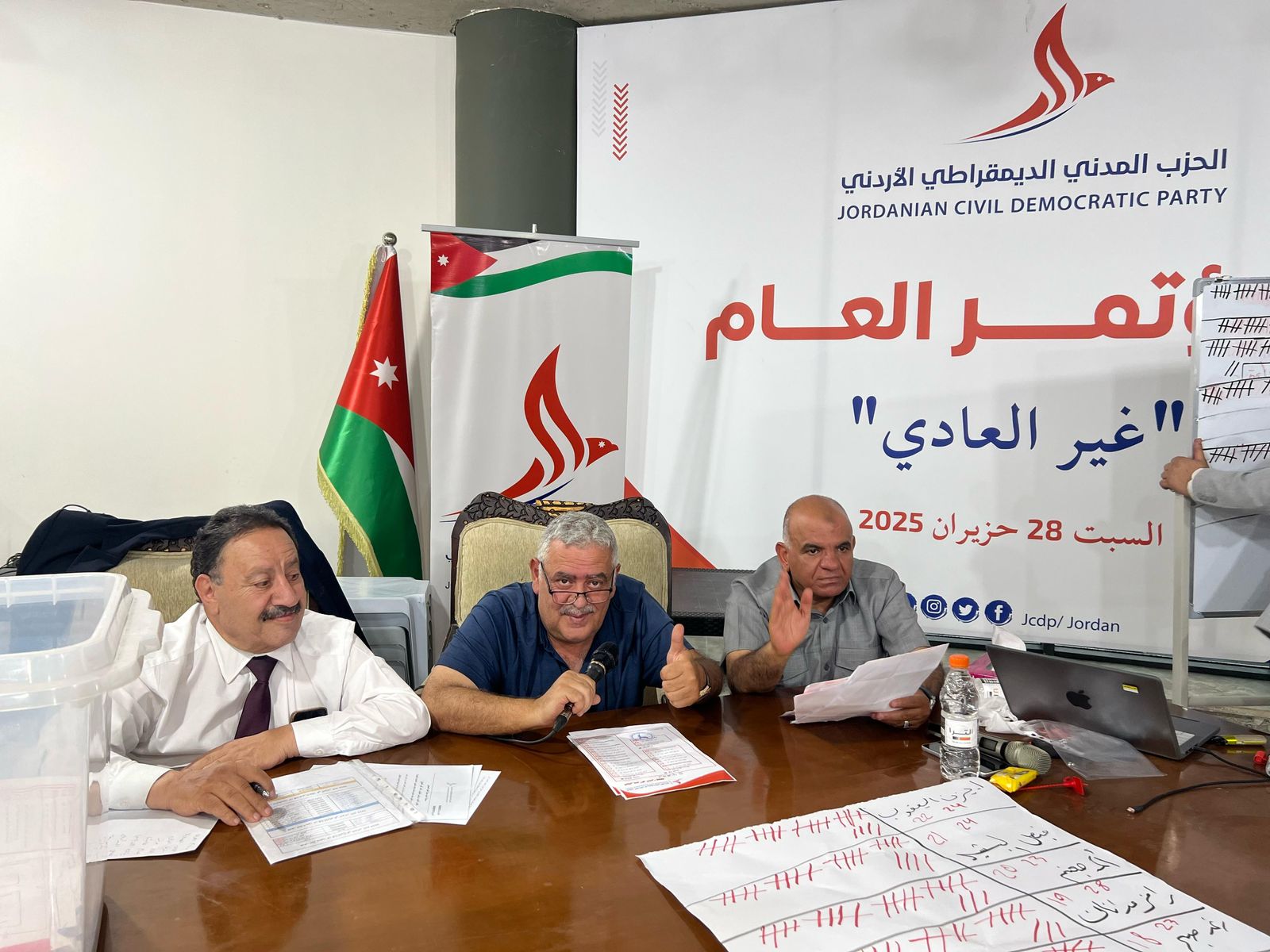 عمون - عقد الحزب المدني الديمقراطي يوم السبت الموافق 12 تموز 2025 مؤتمره العام غير العادي برئاسة رئيس الحزب وحضور ممثلين عن الهيئة المستقلة للانتخاب والمجلس الاستشاري للحزب والمحكمة الحزبية، وذلك في إطار استكمال مسيرته التنظيمية وتعزيز المشاركة الداخلية.