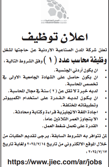مطلوب محاسب للعمل شركة المدن الصناعية