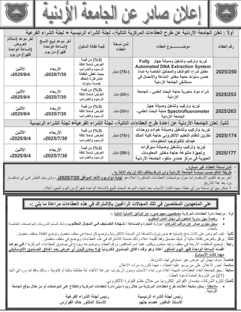 عطاءات صادرة عن الجامعة الاردنية