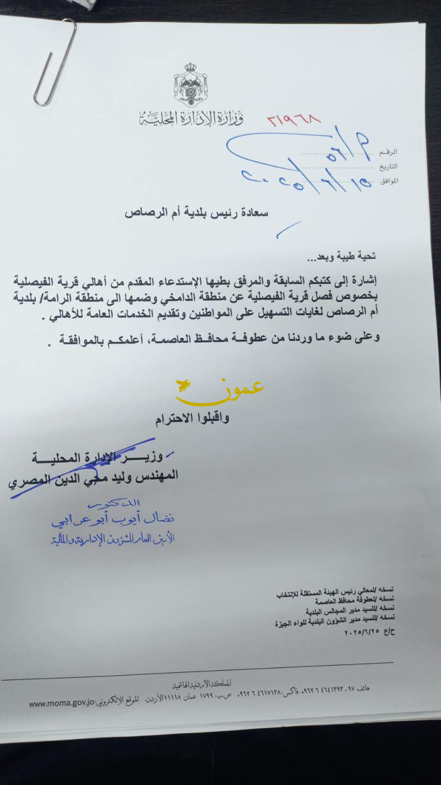 قرار بضم قرية الفيصلية إلى إختصاص بلدية أم الرصاص15-07-2025 09:49 PM