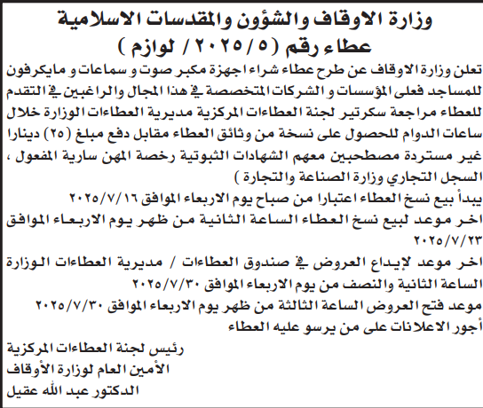 عطاء شراء اجهزة مكبر صوت وسماعات ومايكرفون للمساجد