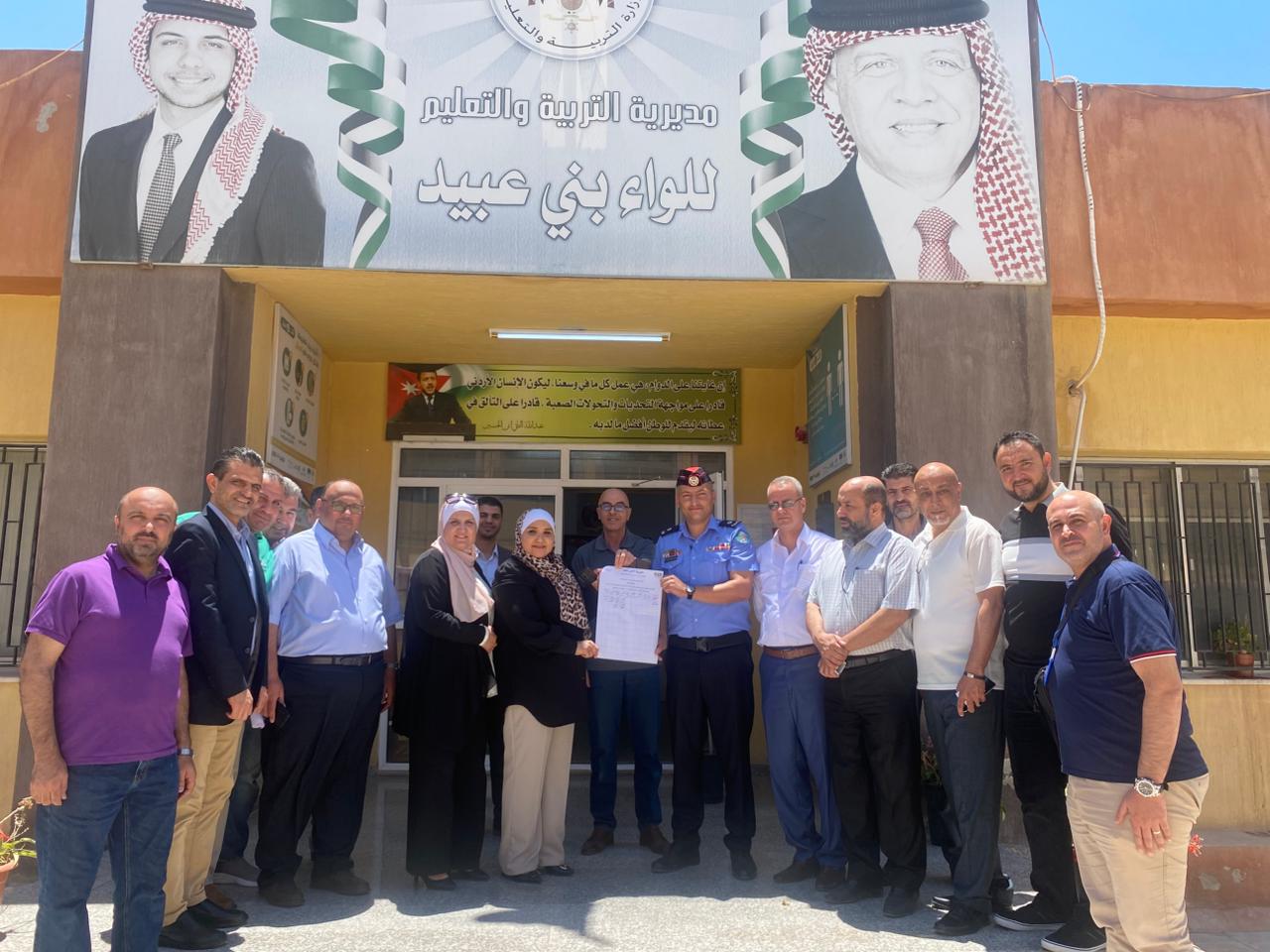 عمون - إيمانا من حرص مديرية التربية والتعليم في لواء بني عبيد بالشراكة المجتمعية التي تهدف لعدم إطلاق النار بالمناسبات والأفراح، وقعت مديرية التربية والتعليم، اليوم الأربعاء، ممثلة بمديرة التربية والتعليم السيدة نسرين البكار، على وثيقة الشرف (لا لاطلاق العيارات النارية بالمناسبات والأفراح) ،وبحضور مدير الشؤون التعليمية الدكتور إبراهيم كنعان، ومدير الشؤون الإدارية والمالية الأستاذ أيمن النصيرات، ورؤساء الاقسام، والموظفين.