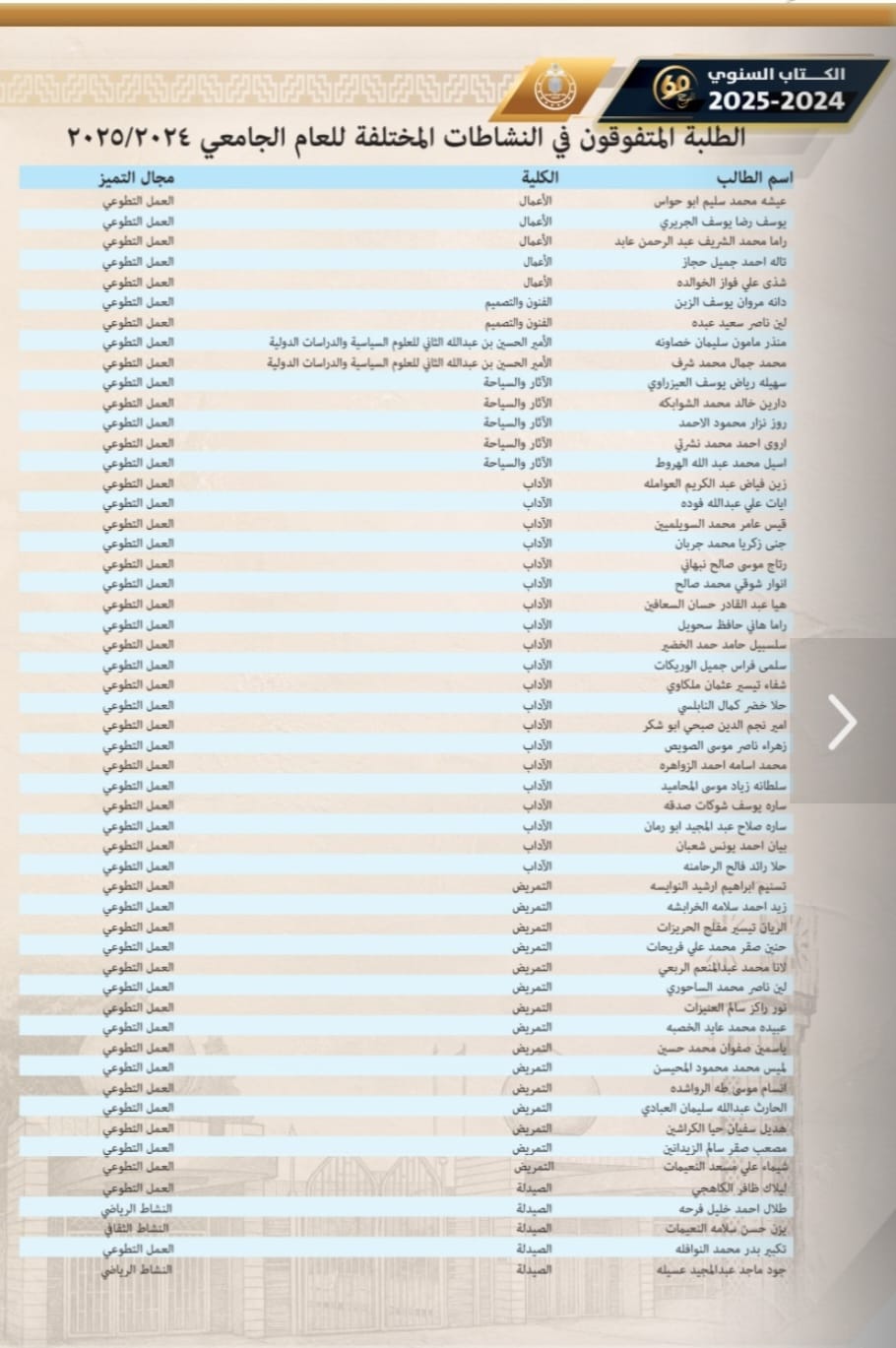 طلاب آداب الأردنية يتصدّرون التميز في العمل التطوعي