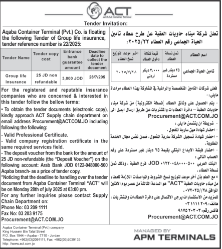 عطاء صادر عن شركة ميناء حاويات العقبة