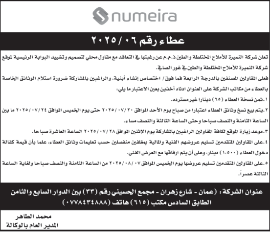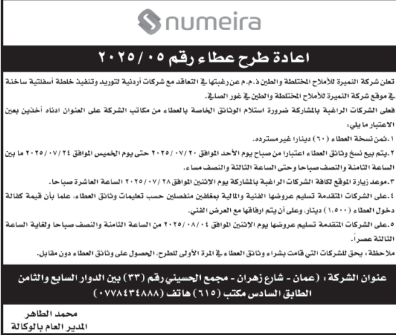 عطاءات صادرة عن شركة النميرة للاملاح المختلطة