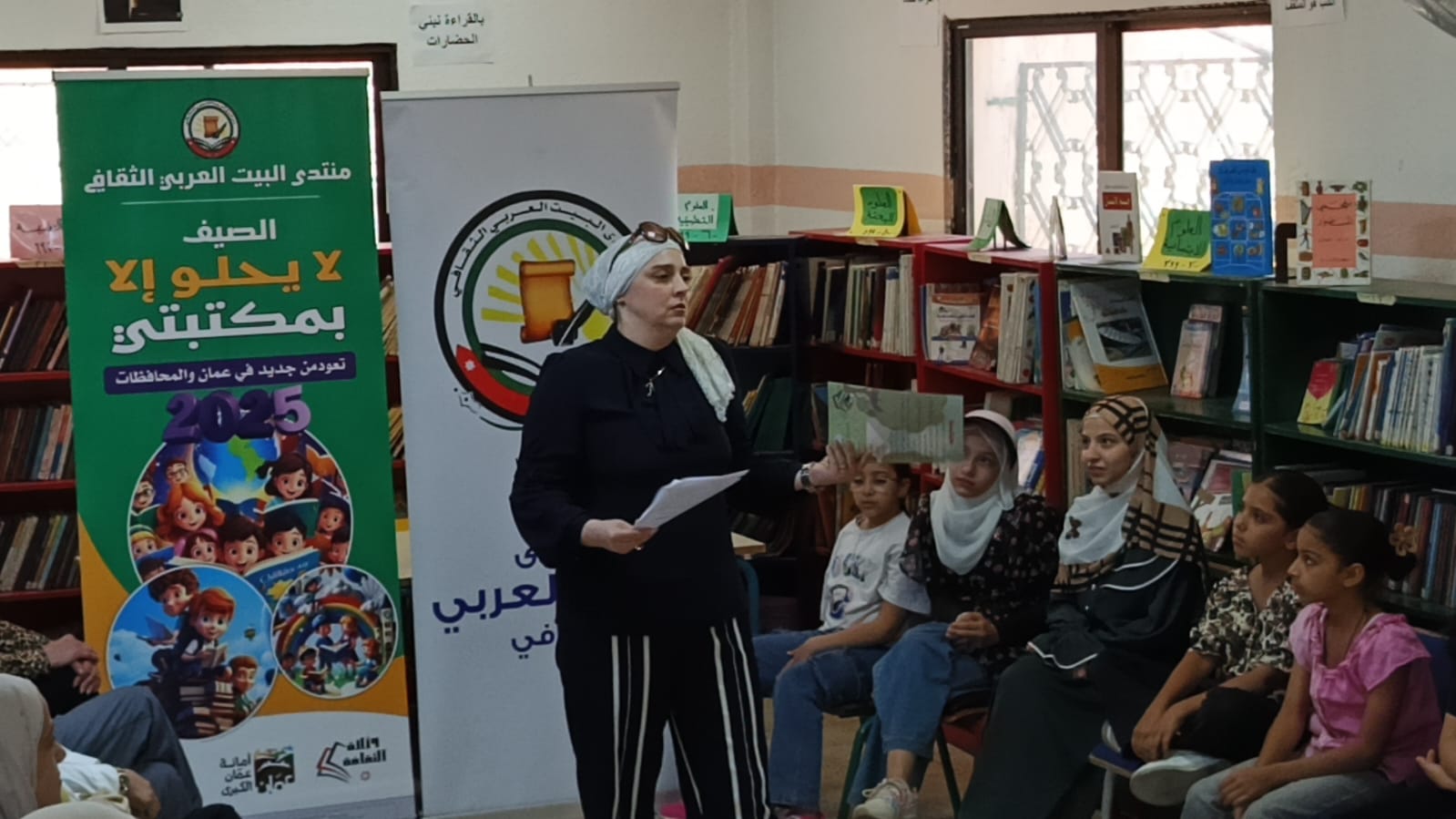 عمون - لاقت مبادرة "الصيف لا يحلو إلا بمكتبتي" والتي ينظمها منتدى البيت العربي الثقافي بالشراكة مع وزارة الثقافة وأمانة عمان الكبرى والمكتبة الوطنية إقبالا واستحسانا من قبل الأطفال من الفئة العمرية من السابعة حتى الثالثة عشر، حيث حطت رحالها صباحٍ يوم الأحد 20 تموز 2025 في مكتبة الراية الهاشمية بمنطقة المدينة الرياضية .