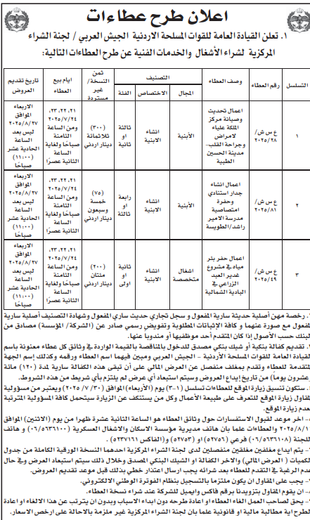 عطاءات صادرة عن القيادة العامة للقوات المسلحة
