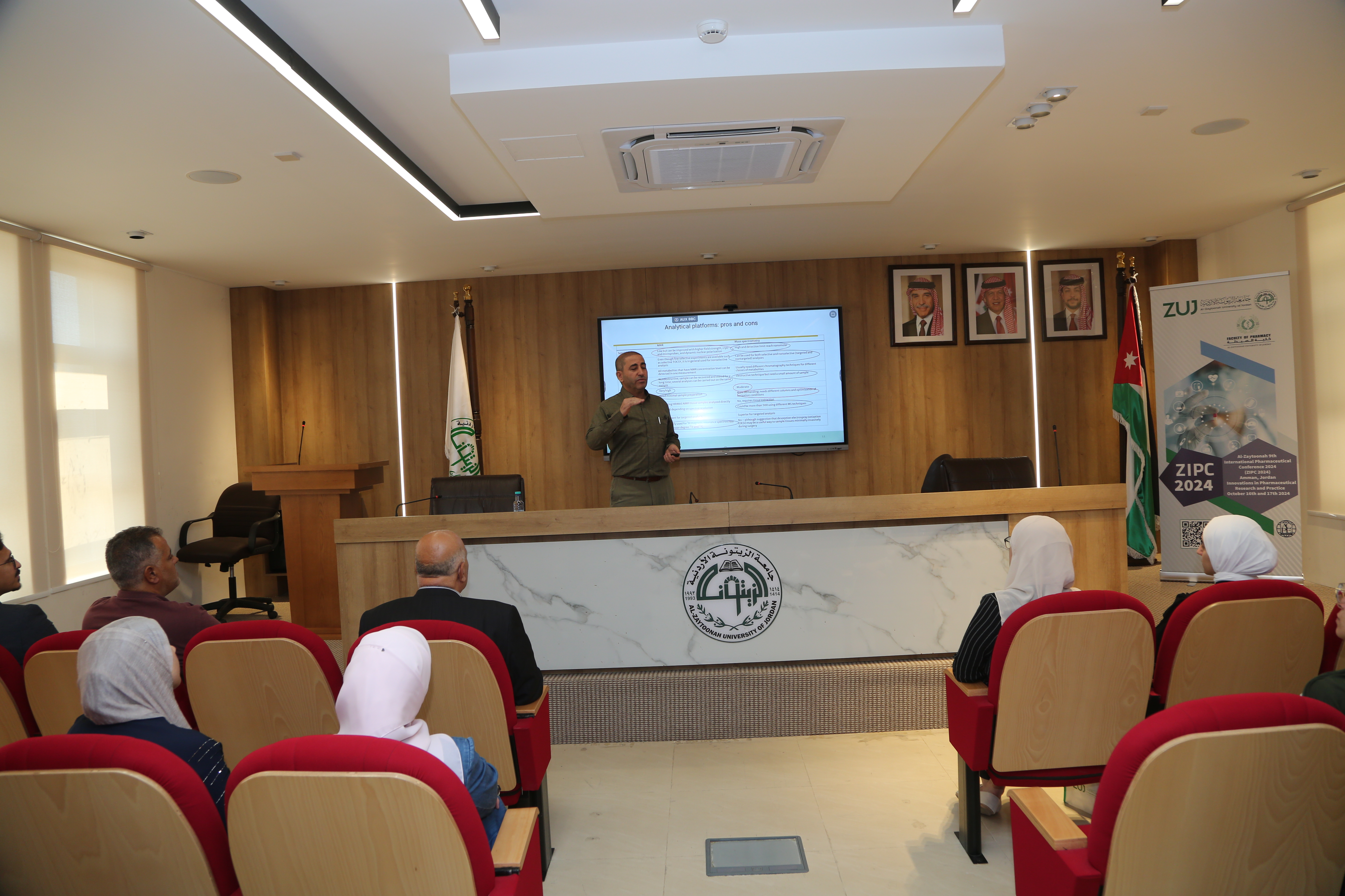 عمون - نظّمت كلية الصيدلة في جامعة الزيتونة الأردنية ورشة تدريبية متخصصة بعنوان "توظيف تقنيات الرنين المغناطيسي النووي في الطب التشخيصي واكتشاف الأدوية"، قدّمها الدكتور عبد الحميد أمويس من جامعة الملك عبد الله للعلوم والتقنية في المملكة العربية السعودية، بحضور عدد من أعضاء الهيئة التدريسية وطلبة الكلية.