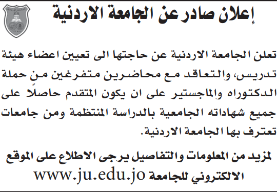 الجامعة الاردنية بحاجة لتعيين اعضاء هيئة تدريسية