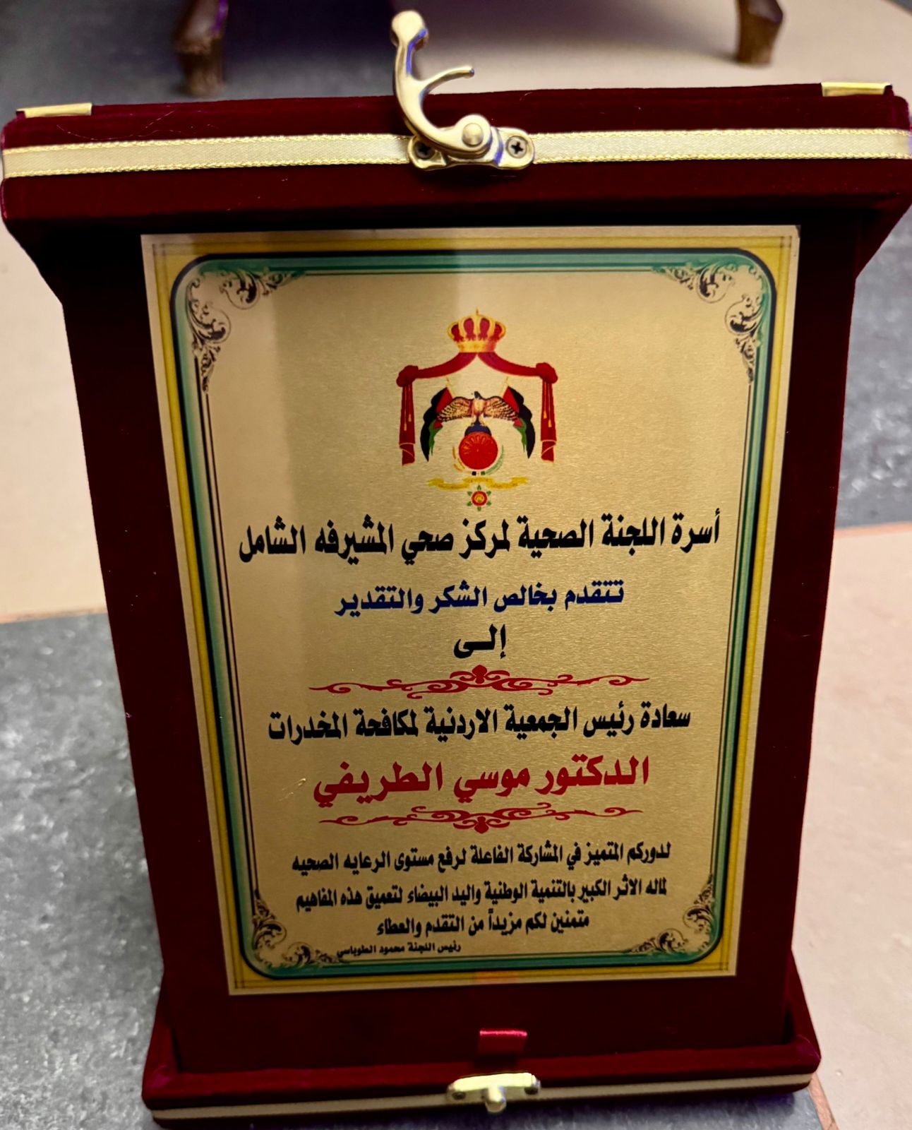 وفي ختام الندوة، عبّر الأستاذ محمود الطوباسي عن شكره وتقديره للجمعية والمحاضرين على جهودهم في نشر الوعي، مؤكداً استمرار التعاون مع الجهات المعنية في هذا المجال. كما قام بتقديم دروع تكريمية لكل من الدكتور موسى الطريفي والدكتورة كلثوم الطيراوي، تقديراً لعطائهما وتميزهما في المجال التوعوي والإنساني.