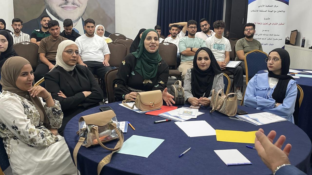 عمون - في إطار الجهود الوطنية الرامية إلى تمكين الشباب وترسيخ مبادئ الشفافية والنزاهة في الحياة الحزبية، نظم مركز الشفافية الأردني، بالتعاون مع وزارة الشباب، وبدعم من صندوق الملك عبدالله الثاني للتنمية، من خلال مشروعه "تمكين لدعم المشاريع السياسية"، ورشة عمل تدريبية حول “تمكين الشباب في تعزيز نزاهة الأحزاب”، وذلك في مركز شباب وشابات حي الأمير محمد التابع لمديرية شباب الزرقاء / وزارة الشباب.