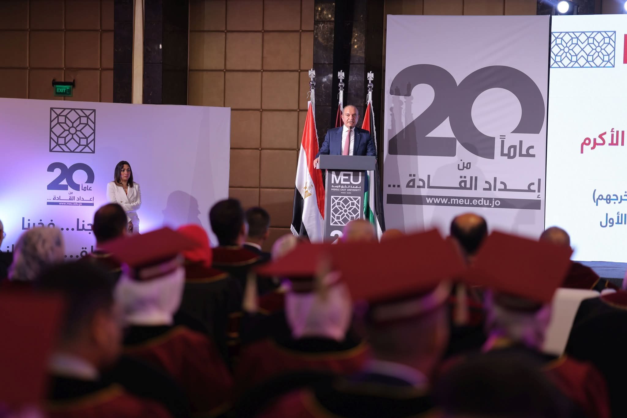وفي كلمة له خلال الحفل، أكد سفير المملكة الأردنية الهاشمية لدى جمهورية مصر العربية، معالي أمجد العضايلة اعتزازه بهذا الحفل الذي يشكل انطلاق باكورة تخريج الطلبة المصريين الدارسين في الجامعات الأردنية، وأن تستهل جامعة الشرق الأوسط هذه البادرة، بما يؤكد مكانتها وسمعتها العلمية إلى جانب جميع الجامعات الأردنية، الحكومية والخاصة.