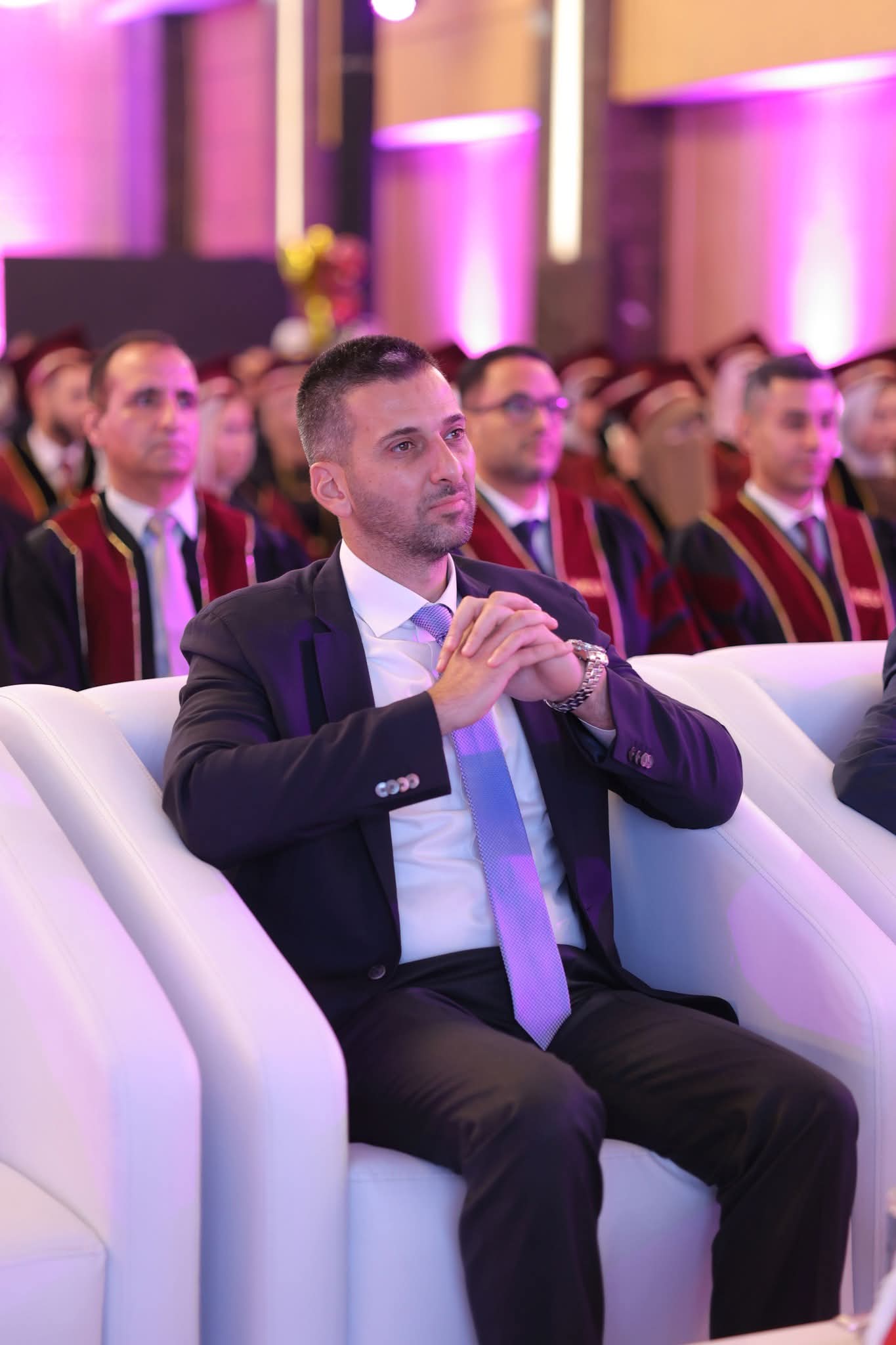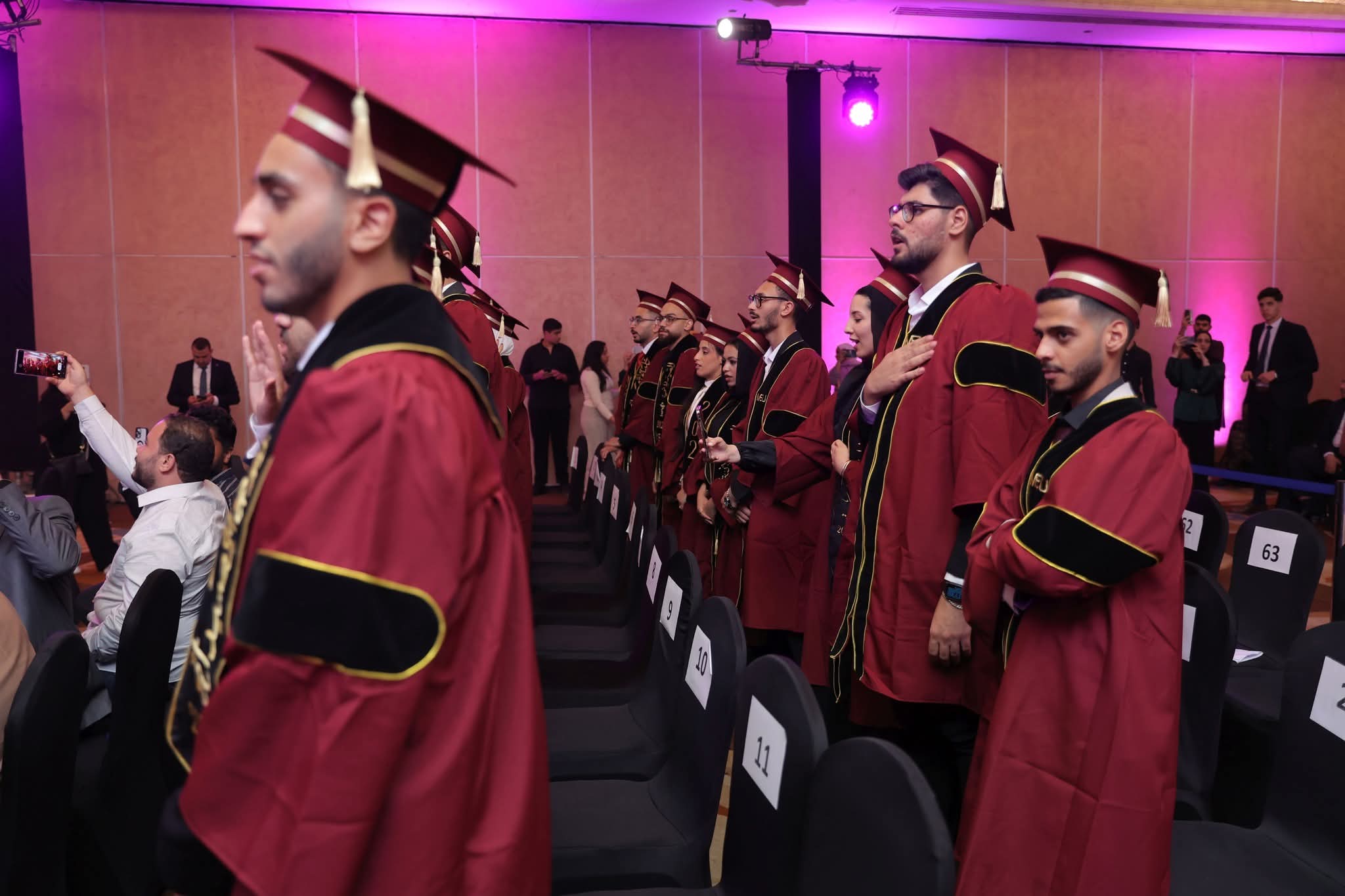 من جهته، عبّر الأستاذ الدكتور أحمد اللوزي، نائب رئيسة الجامعة، عن اعتزازه بخريجي الجامعة من جمهورية مصر العربية، مشيدًا بما أظهروه من التزامٍ وجديةٍ خلال سنوات دراستهم، ومهنئًا إياهم وأسرهم بهذا الإنجاز، الذي يشكّل محطةً مفصليةً في مسيرتهم المهنية والشخصية، ويمثل بدايةً لمرحلة جديدة من العطاء والتقدم في مختلف الميادين العلمية والعملية.