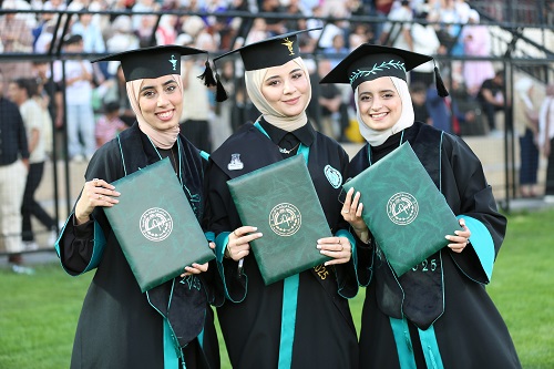 وفي ختام الحفل، قام رئيس الجامعة بتسليم الشهادات للخريجين، وتوزيع الجوائز على الطلبة المتفوقين، وسط أجواء احتفالية عمّتها مشاعر الفخر والفرح. وبلغ عدد خريجي هذه الكليات (797) خريجاً وخريجة، منهم (671) من حملة درجة البكالوريوس، و(26) من حملة درجة الماجستير.