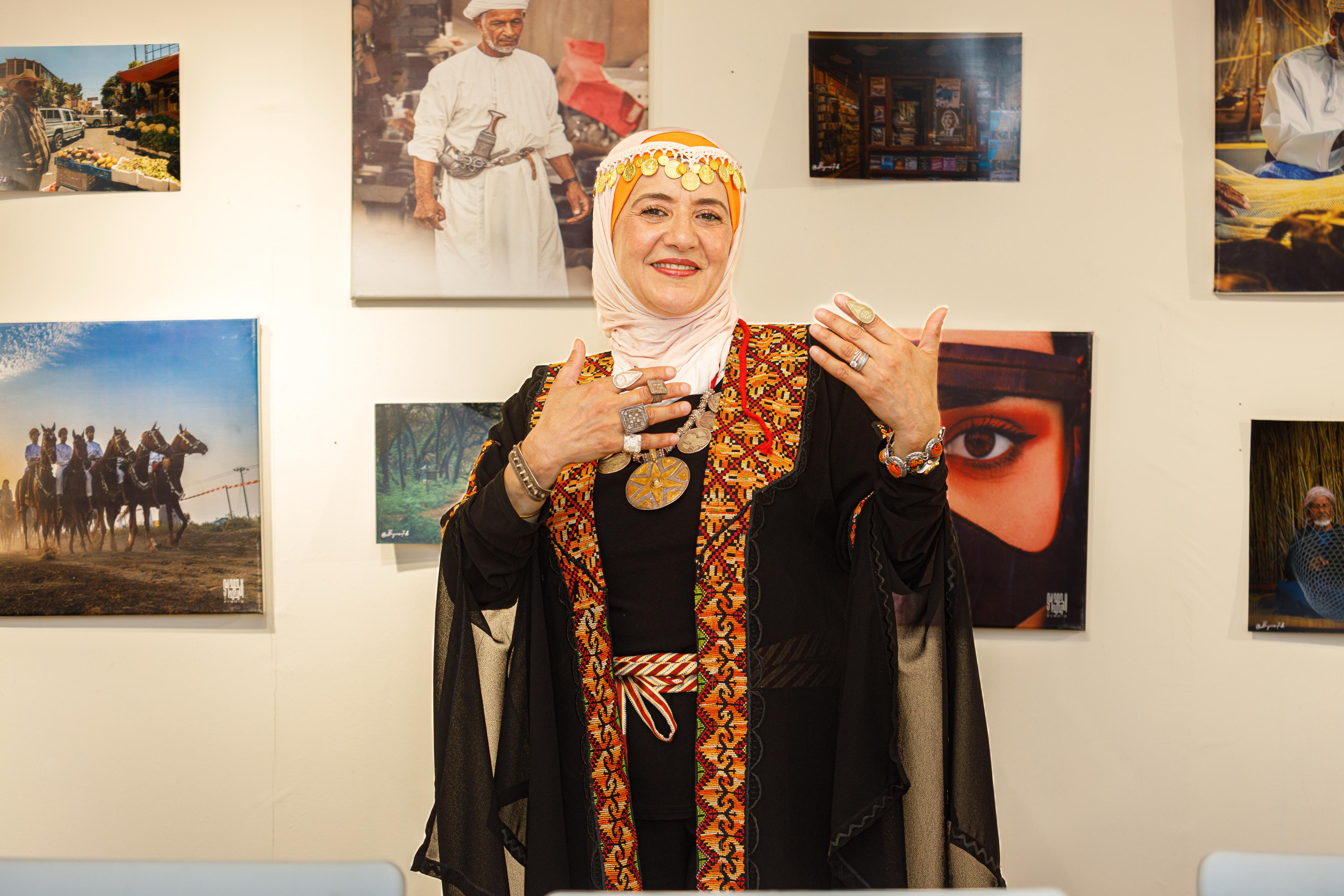 وفي ركن آخر وضعت معروضات للقطاع الخاص بالمرأة التي تبدع في تقديم منتجاتها في التطريز والحياة من شجر الموز وسعف النخيل كما أشارت السيدة دولا النمّري.
