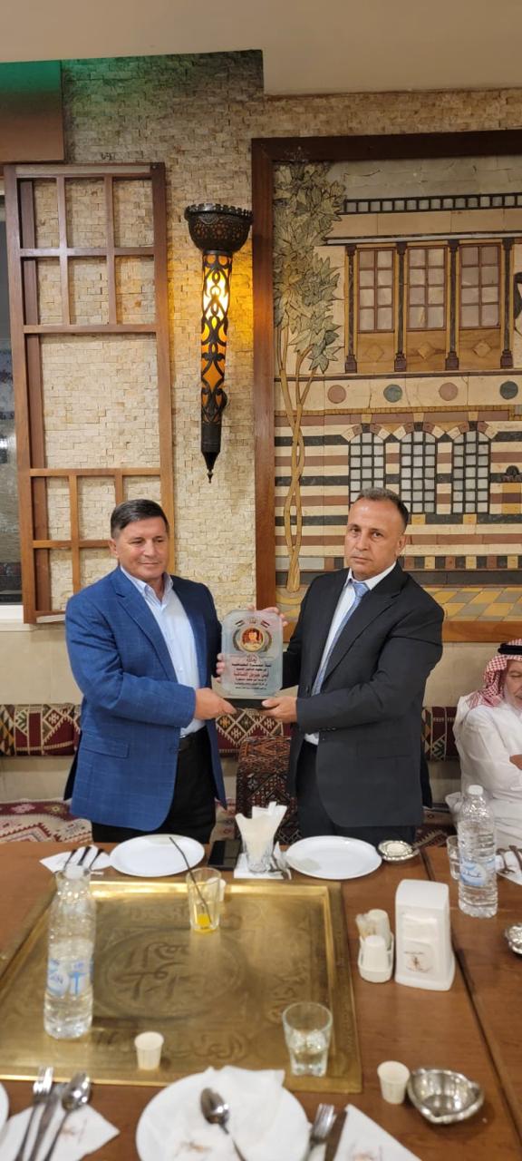 وفي نهاية الحفل، قدم اللواء المتقاعد المهندس محمد موسى الهباهبة درعا تكريميا باسم ابناء العشيرة للعميد المتقاعد أيمن الهباهبة بحضور عدد من وجهاء وابناء العشيرة.