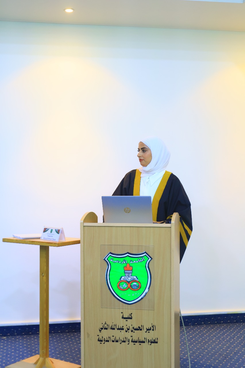 عمون - أنهت سجود العبادي، مناقشة رسالة الماجستير في الجامعة الأردنية من كلية الأمير الحسين بن عبد الله للعلوم السياسية والدراسات الدولية، وذلك عن رسالتها التي حملت عنوان: تقييم أثر قوانين حقوق الإنسان على الممارسات الاجتماعية والثقافية: دراسة حالة النساء والأطفال في الأردن.