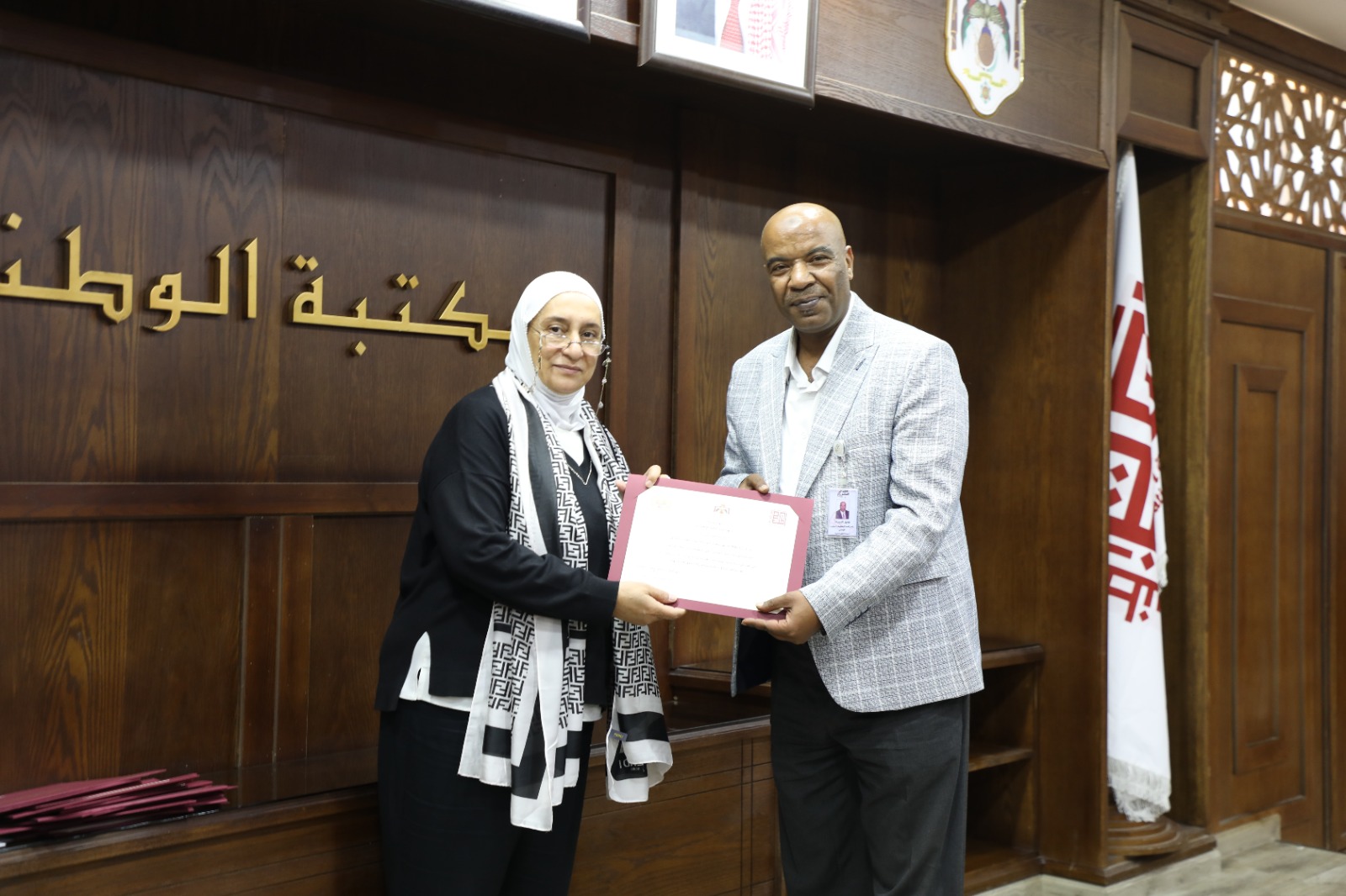 عمون - برعاية مدير عام المكتبة الوطنية بالوكالة الأستاذة عروبة الشمايلة، أقامت المكتبة الوطنية اليوم الثلاثاء حفل تخريج الفوج الخامس عشر لعدد من موظفي القطاع العام والأمن في البرنامج التأهيلي والتدريبي مأسسة اجراءات حق الحصول على المعلومات / أرشفة الوثائق. |