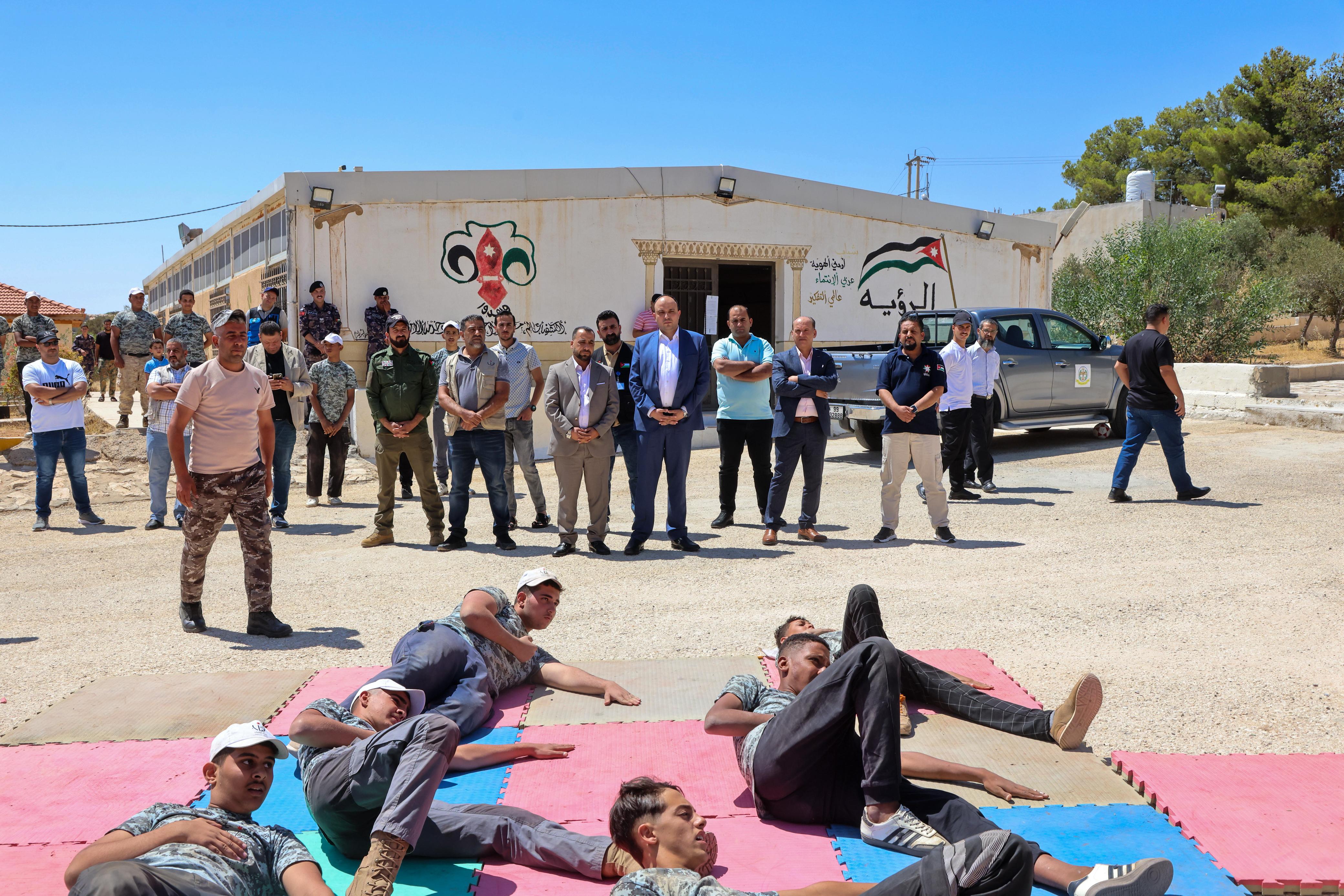 كما تفقد الشديفات معسكر المغامرة والتحدي (نشامى الوطن) في بيت شباب القادسية، حيث تابع جانبا من تدريبات الدفاع عن النفس، ومهارات الميدان، والإنزال الجبلي، وشد الحبل، وقدم الشكر للأجهزة الأمنية على دعمها المستمر لهذه المعسكرات، مؤكداً أنها تسهم في تعزيز ثقافة المشاركة والانضباط والعمل الجماعي لدى الشباب.