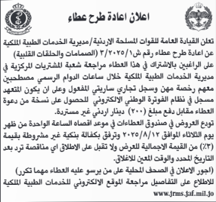 عطاء صادر عن الخدمات الطبية الملكية